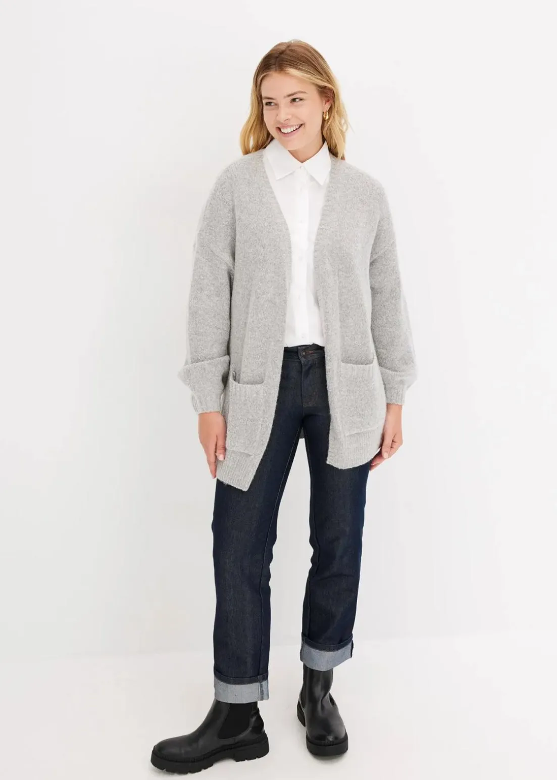 Oversized Strickjacke mit aufgesetzten Taschen