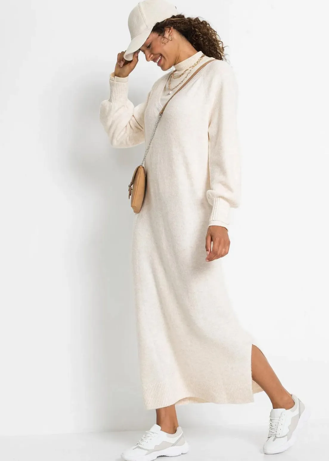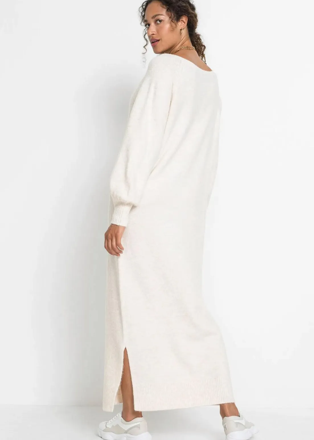 Lässiges Oversized Strickkleid in Maxilänge mit leichten Ballonärmeln