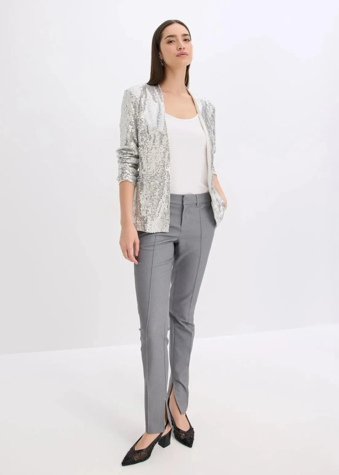 festlicher Pailletten-Blazer mit Haken-und Ösen-Verschluss vorne