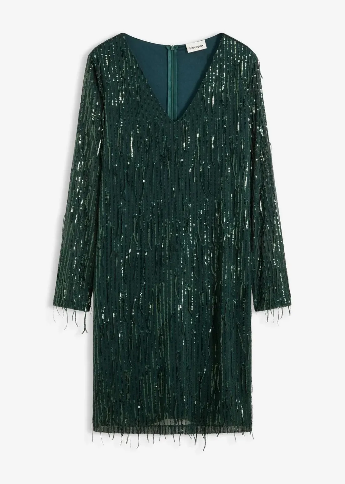 modisches Paillettenkleid mit Pailletten-Fransen und tiefem V-Ausschnitt vorne