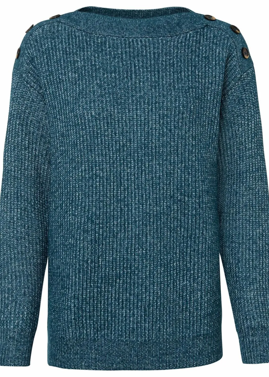Schöner Pullover mit Knöpfen von Bodyflirt. Der Pullover hat einen U-Boot Ausschnitt, der am Ende mit Knöpfen verziert ist. Optische Länge bei Gr. 36/38 ca. 64cm.