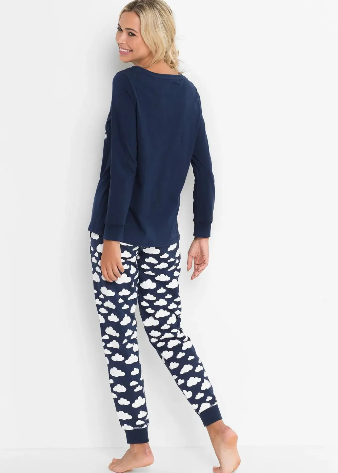 Süßer Pyjama mit Wolken-Print mit Bio-Baumwolle im Umstellungsprozess