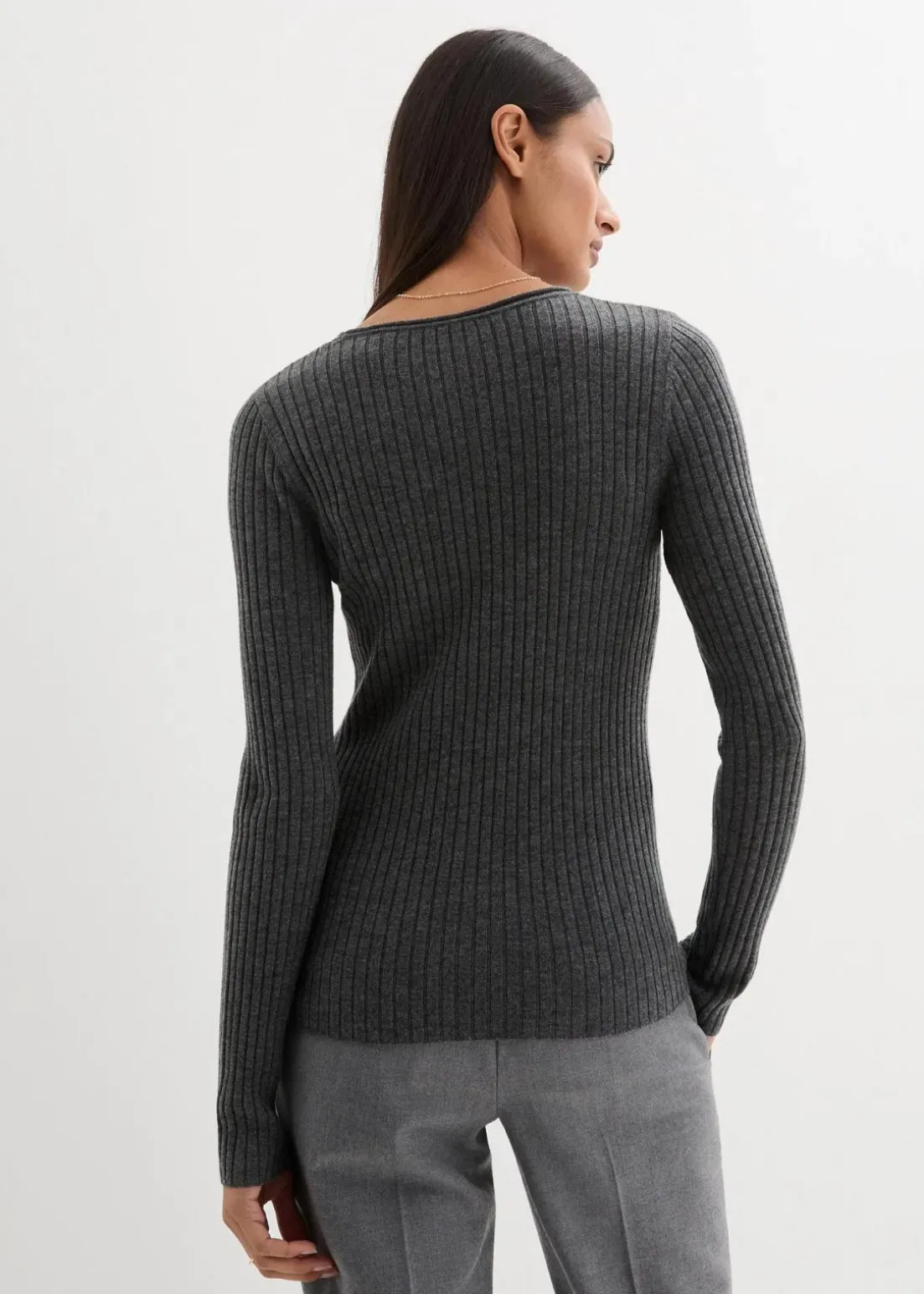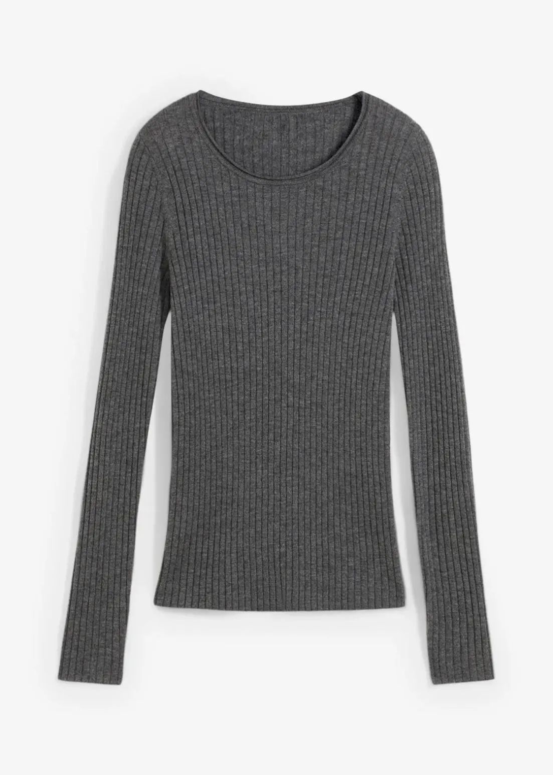 gerippter Rundhalspullover aus reiner Merinowolle in Premium Qualität