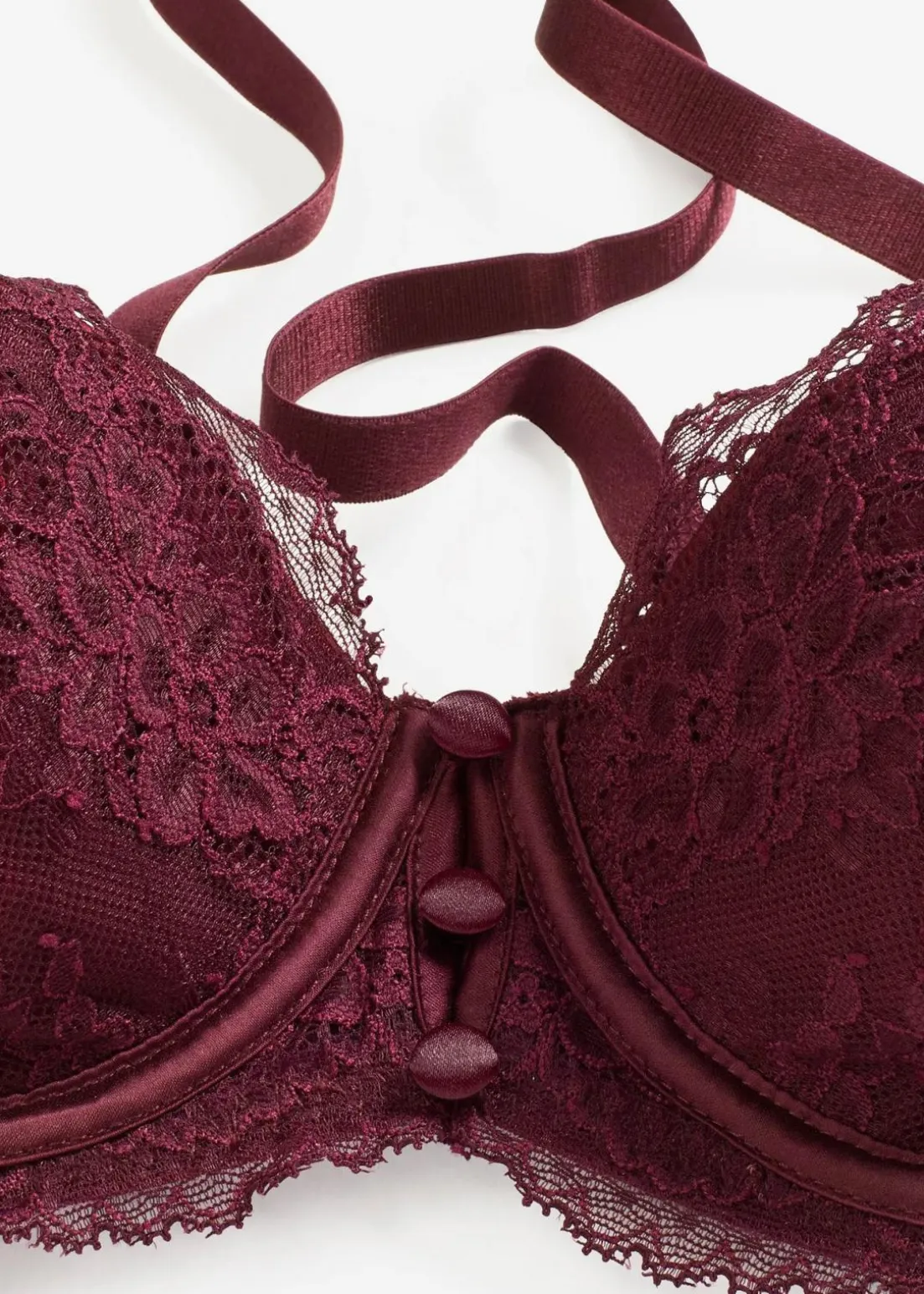 Schalen-BH aus feiner Spitze mit süßem Knopf-Detail.