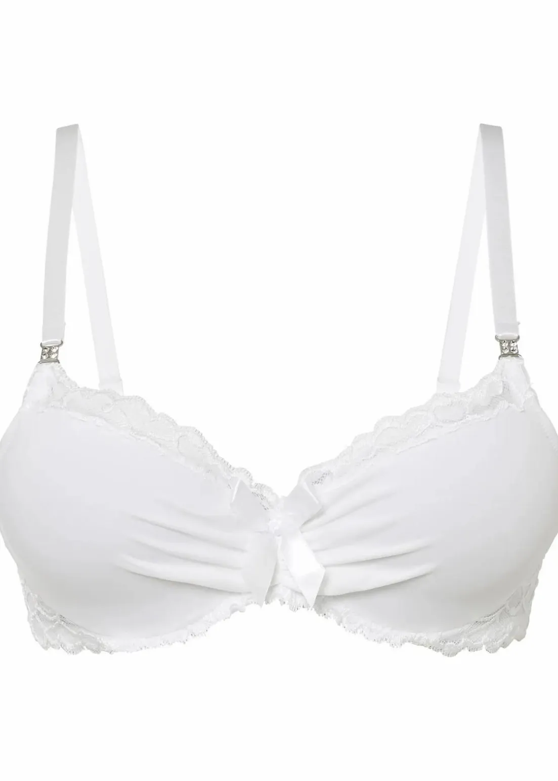 Der Schalen BH von BODYFLIRT ist ein absoluter Blickfang. Die Cupränder und Seiten des BHs ziert feine Spitze. In der Mitte ist der BH zudem mit einem raffiniert drapierten Faltenwurf und einer Schleife aus Satin geschmückt. Zusätzlich sorgen Glitzersteinapplikationen an den Trägern für das gewisse Etwas. Die Cups des BHs sind vorgeformt und gepolstert. Darüber hinaus bieten angenehme Formbügel optimalen Halt. Maite empfiehlt: „Dieses Ensemble ist ganz im Trend. Für die Frau mit dem Hang zur Romantik, die gerne ihre kokette Seite ausleben möchte. Damit bringt sie ihren ganzen Charme zur Geltung und setzt ihn ins richtige Licht.“