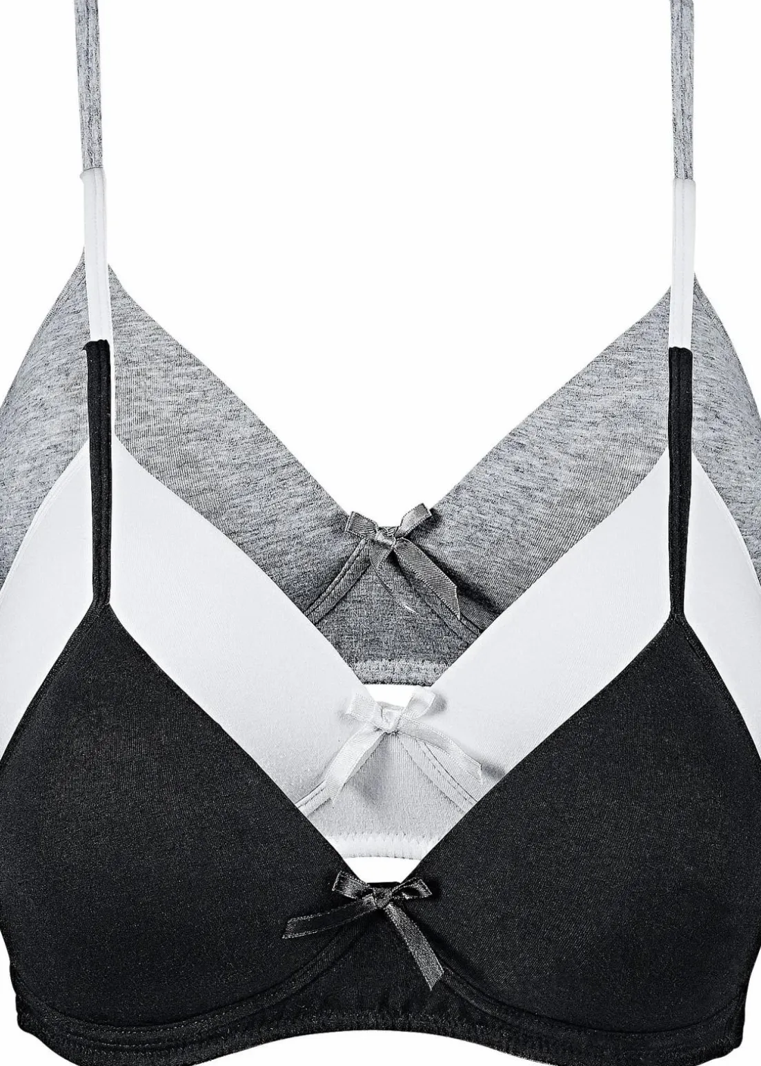 Die nahtlosen, leicht gepolsterten Cups des Schalen-BHs ohne Bügel zeichnen sich auch unter dünnen Stoffen nicht ab. Eine stabile Naht unter den Cups formt sanft die Brust und gibt auch ohne Bügel angenehmen Halt.In Baumwollmischqualität gefertigt begeistern die BHs mit angenehmem Tragekomfort.