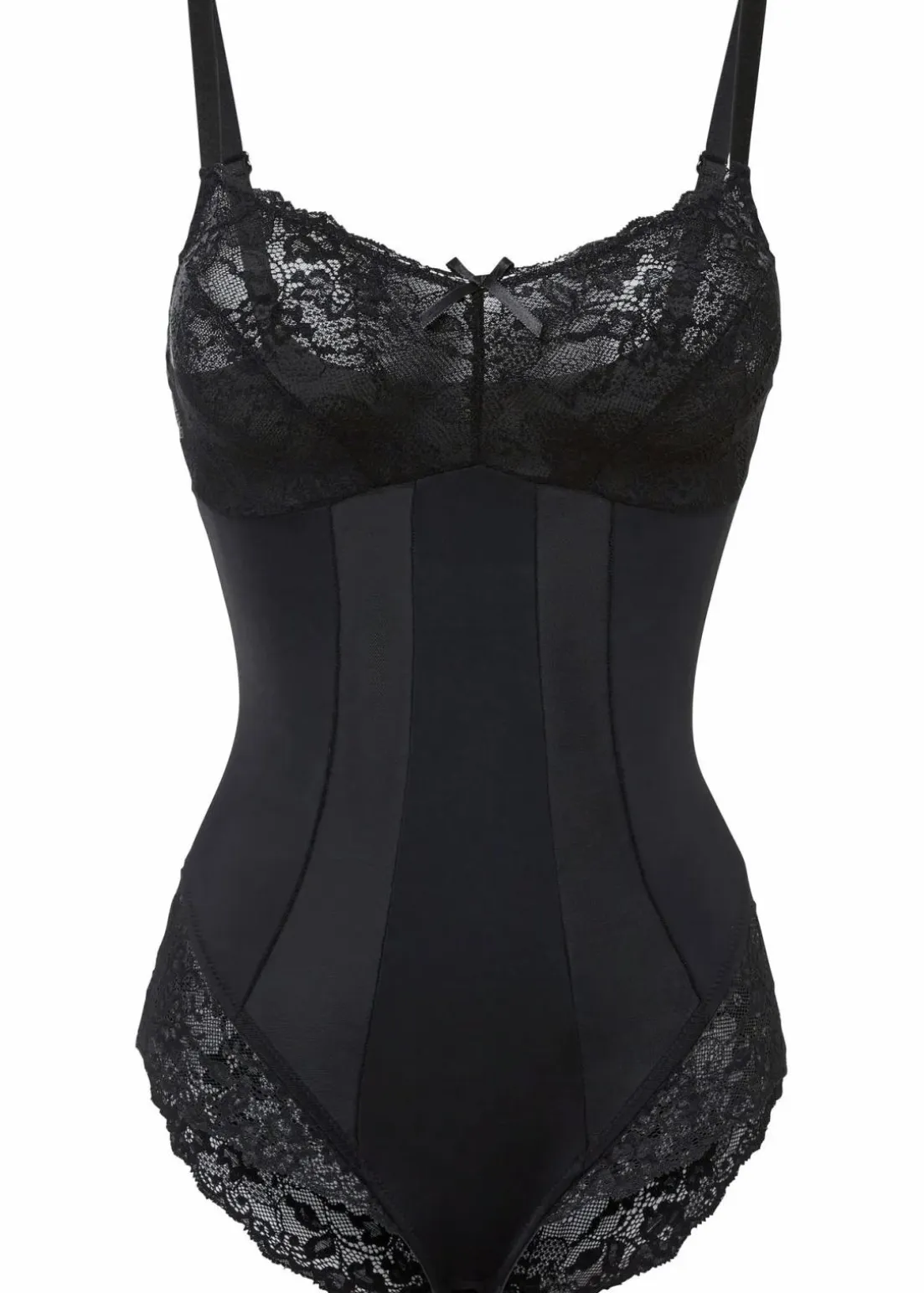 Der Shape Body formt mit mittlerer Formkraft den Oberkörper und zaubert eine tolle Figur. Durch einen Verschluss lässt sich der Body im Schritt öffnen und schließen. Der Shape Body wird von Spitze und Mesh geschmückt.