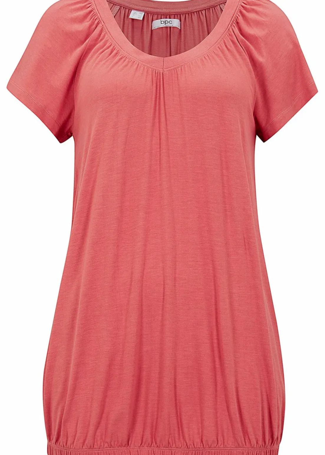 Shirt mit Raffung am V-Ausschnitt, Gummibund am Saum und kleine Flügelärmel