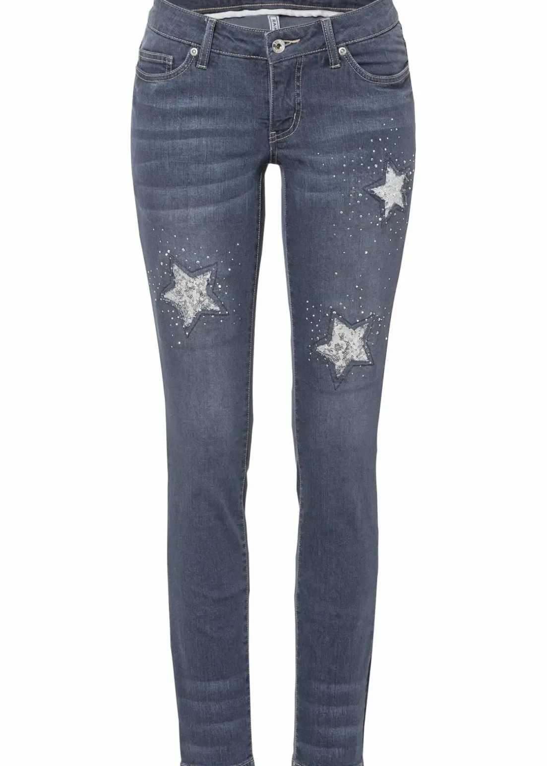 Trendy Skinny-Jeans mit Pailletten und Sternen-Details