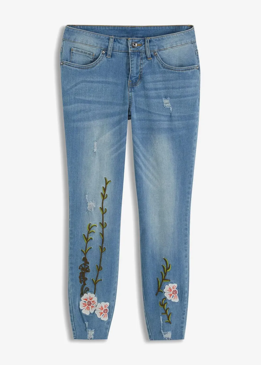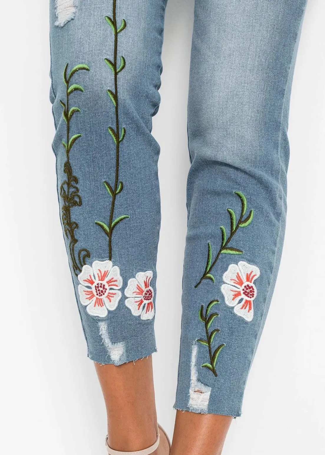 Hübsche Jeans mit bezaubernder Stickerei und Used-Effekten