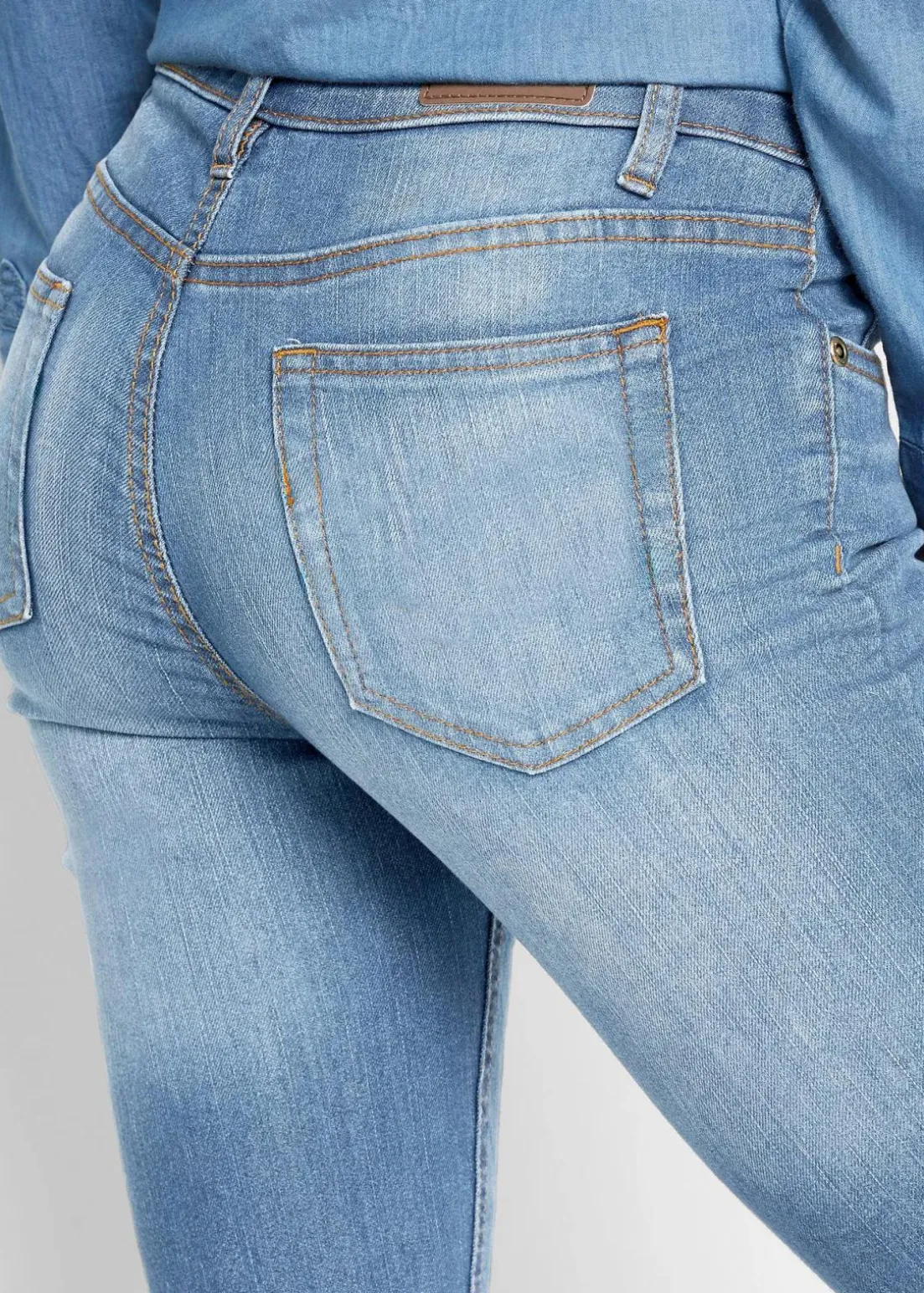 Die Komfort-Stretch-Jeans SKINNY in klassischer 5-Pocket-Form von John Baner erhält mit gewaschener Faltenoptik eine modische Note.In Kombination mit Tuniken oder Blusen und Stiefeln kreieren Sie ein tolles Outfit. Die Hose lässt sich auch mit sportiven Elementen wie einem Sweatshirt und Sneakern lässig tragen.