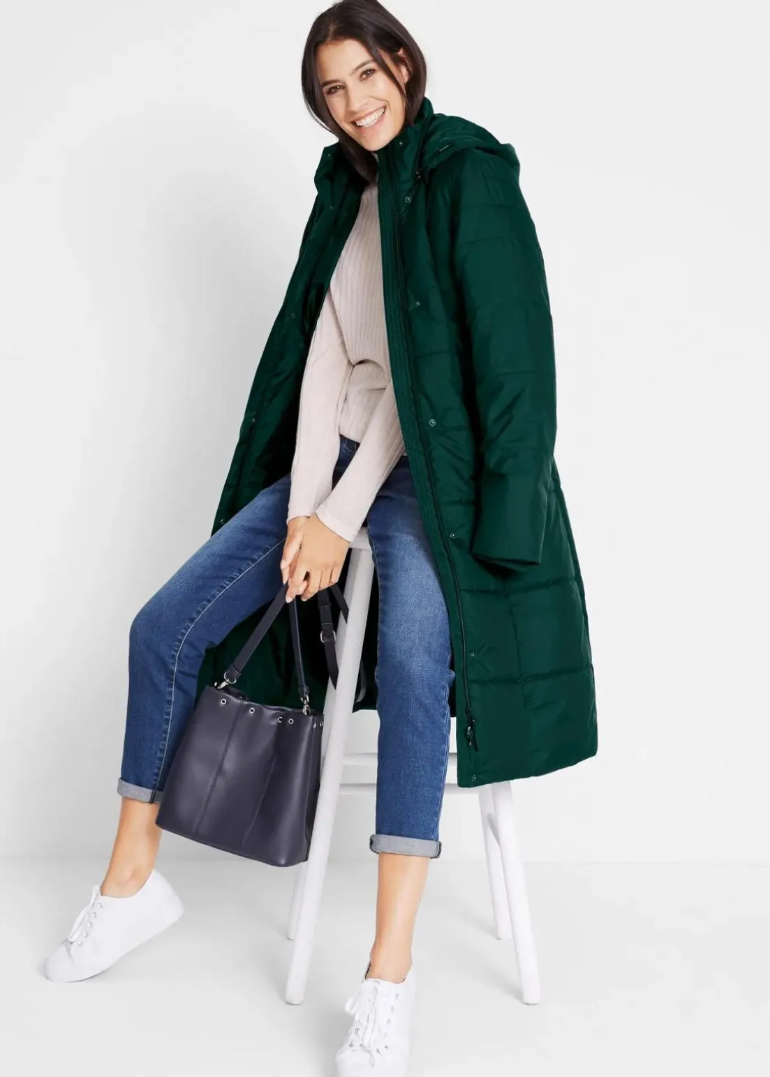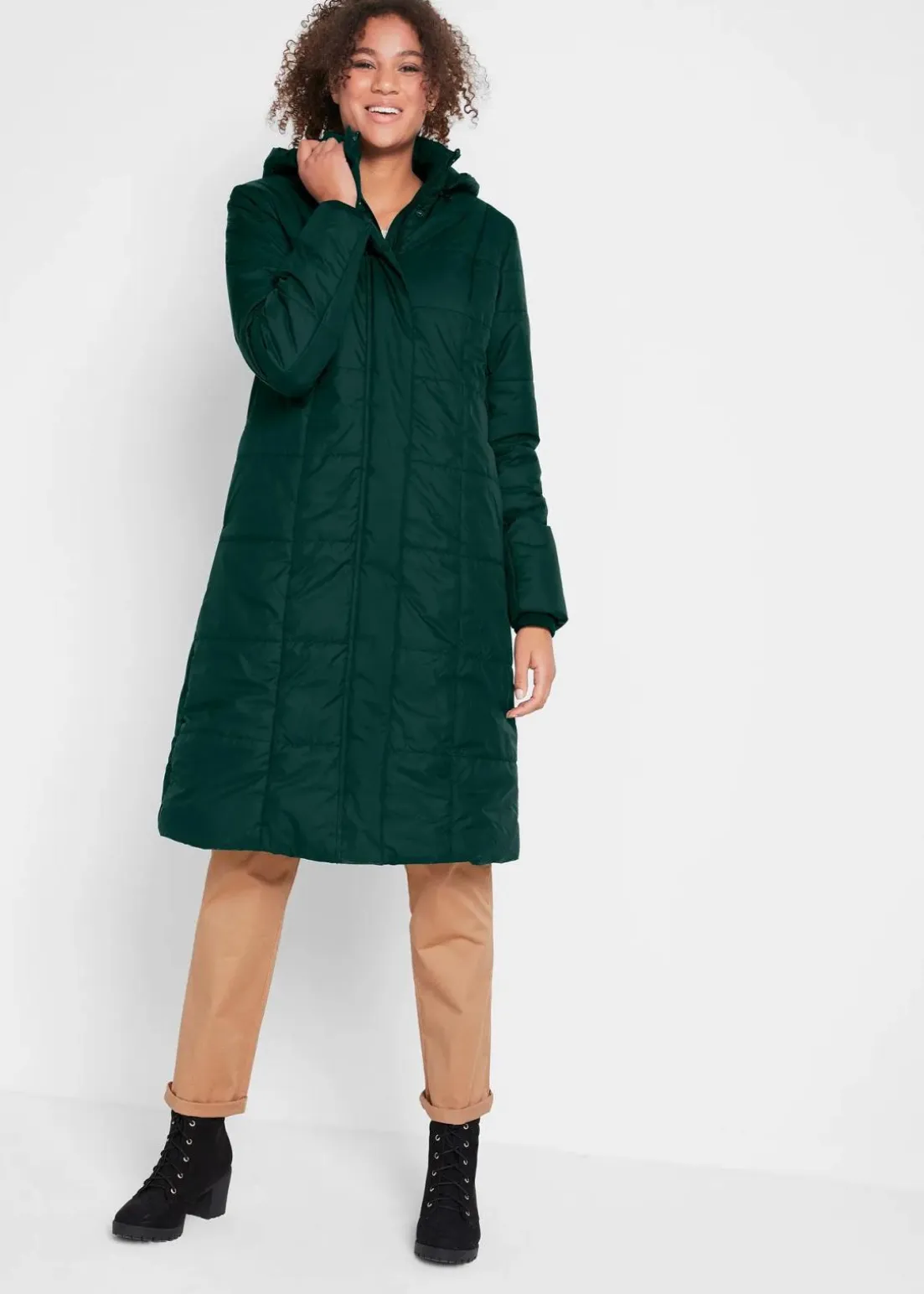 A-linienförmiger Steppmantel mit abnehmbarer Kapuze