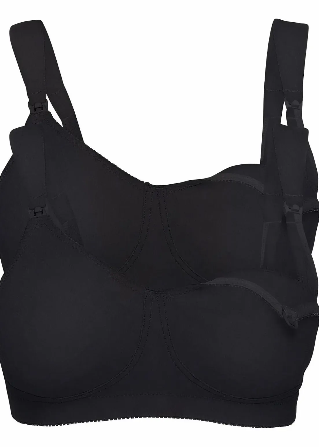 Aus weicher Baumwollqualität gefertigt liegt dieser Still-BH besonders angenehm auf der Haut. Die nahtlos vorgeformten Cups sowie leicht gepolsterte, breite Träger bieten einen angenehmen Tragekomfort. Der Klickverschluss am Cup lässt sich leicht öffnen.Im günstigen Pack sind zwei Still-BHs aus der Kollektion Nice Size enthalten. Als besonderes Detail hat der BH einen verlängerten Verschluss im Rücken. So wird er den Bedürfnissen in Schwangerschaft und Stillzeit besonders gerecht und lässt sich perfekt an die Unterbrustweite anpassen.Während der Schwangerschaft verändert sich der Körper. Daher empfehlen wir Ihnen, dass Sie sich neu ausmessen. Damit Sie Ihre korrekte Größe ermitteln können