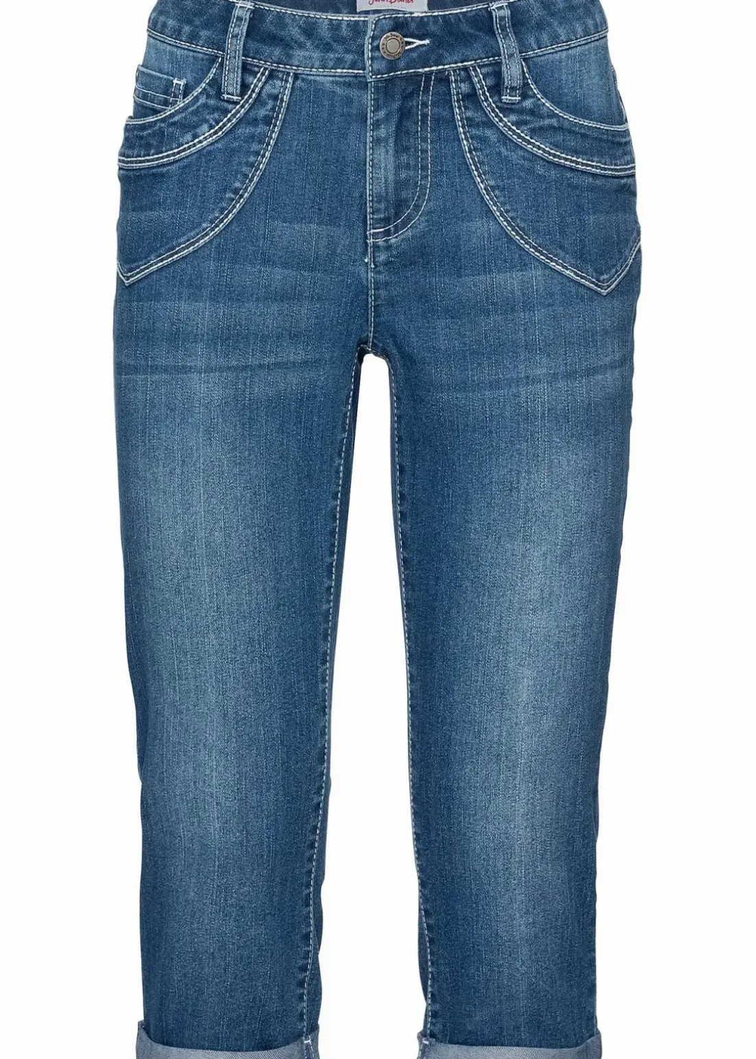 Leicht gewaschene Stretch-Jeans in Caprilänge mit Ziernähten
