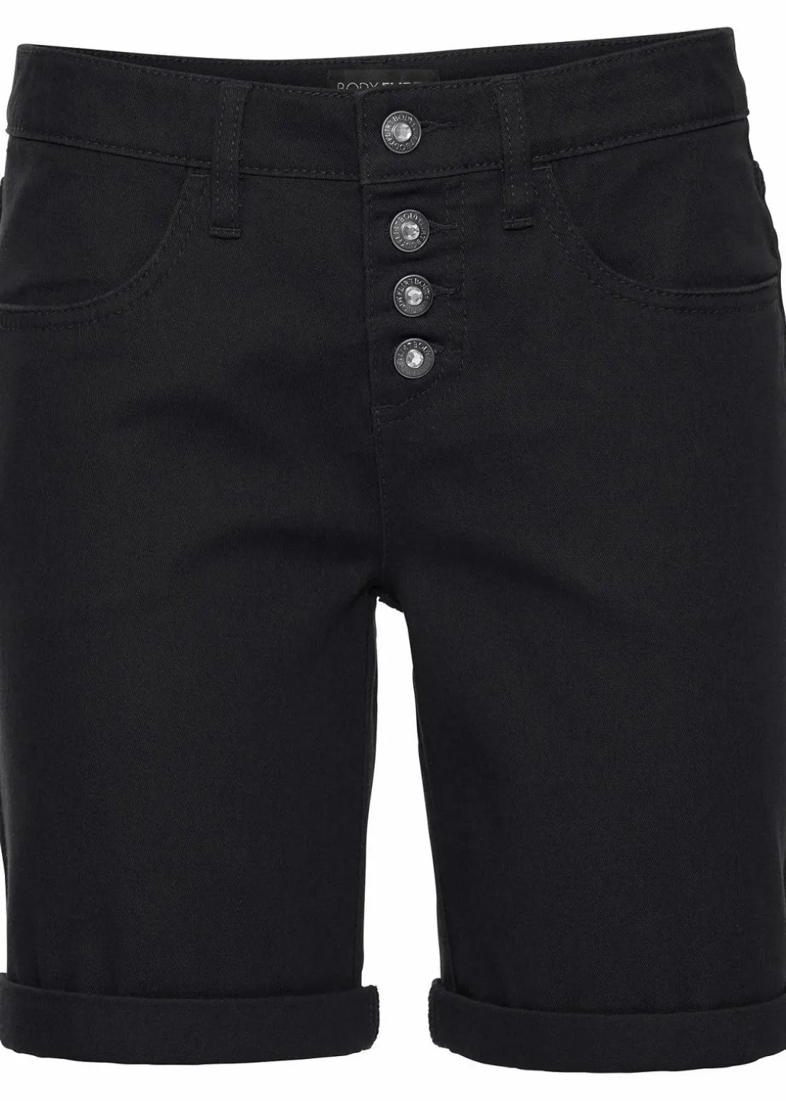 Diese Stretch-Bermuda von BODYFLIRT begeistert mit ihrer figurbetonenden Silhouette. Das ansprechende Modell mit einer auffälligen Knopfleiste präsentiert sich mit zwei Eingrifftaschen auf der Vorder- sowie zwei Gesäßtaschen auf der Rückseite.Dank ihres zurückhaltenden Designs überzeugt die Stretch-Bermuda in vielen Variationen. Ein aparter Chic-Look gelingt mit Bluse, Blazer und Pumps. Einen Hauch von Romantik erhält sie mit einer geblümten Chiffon-Tunika und Ballerinas. Aber auch ein Top, Jeans- oder Lederjacke sowie Ankle Boots stehen dem weichgewaschenen Modell gut.