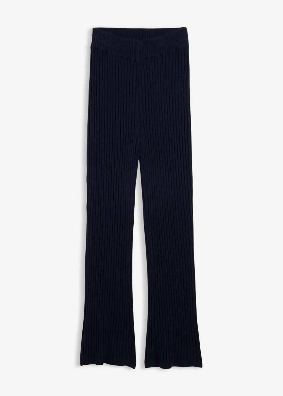 Hoch tailliertes Hosenmodell mit schmalen Rippbund und verdecktem Gummizug.