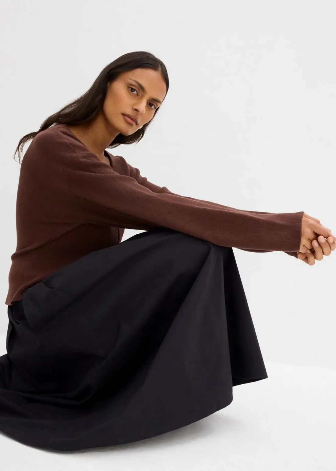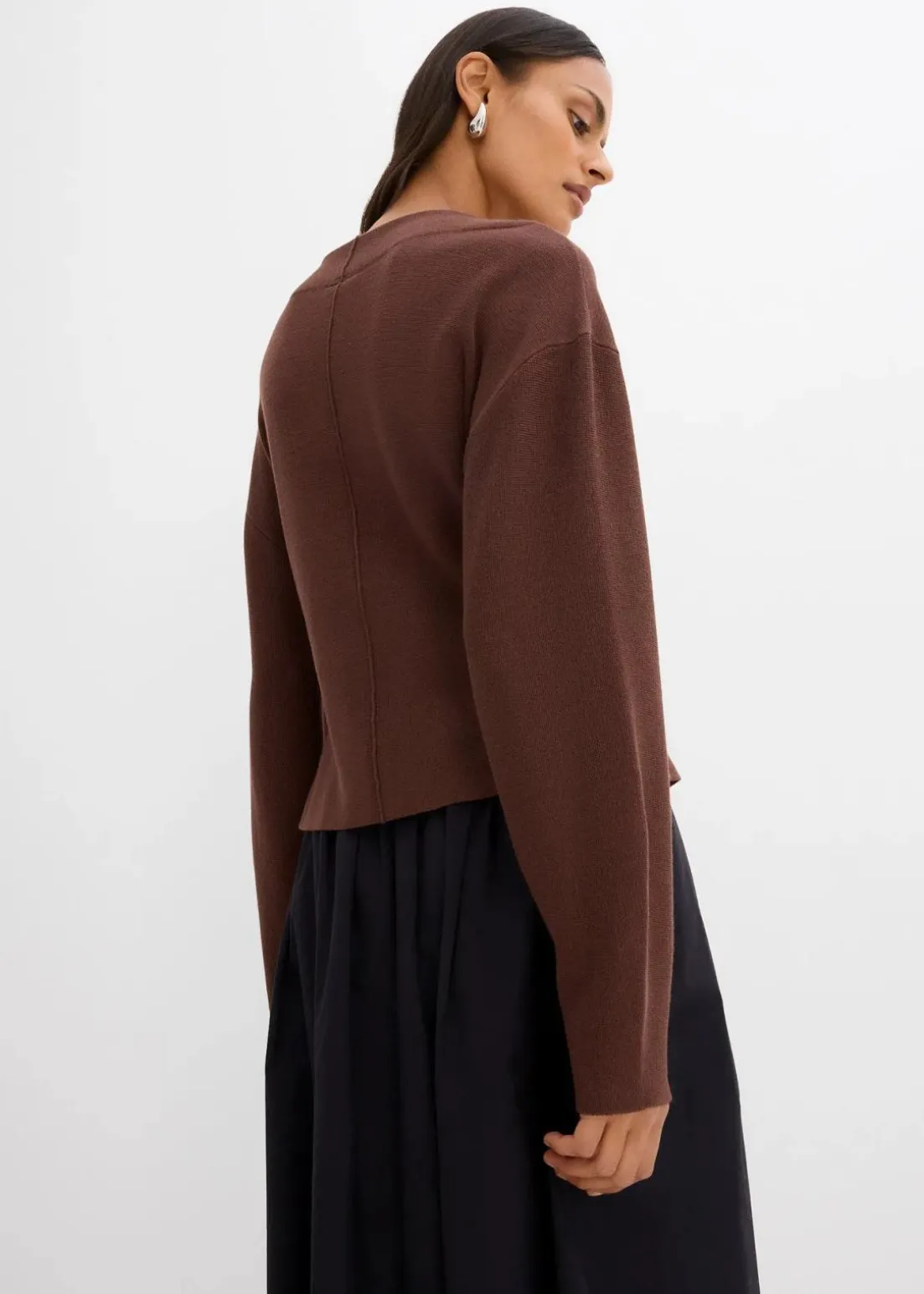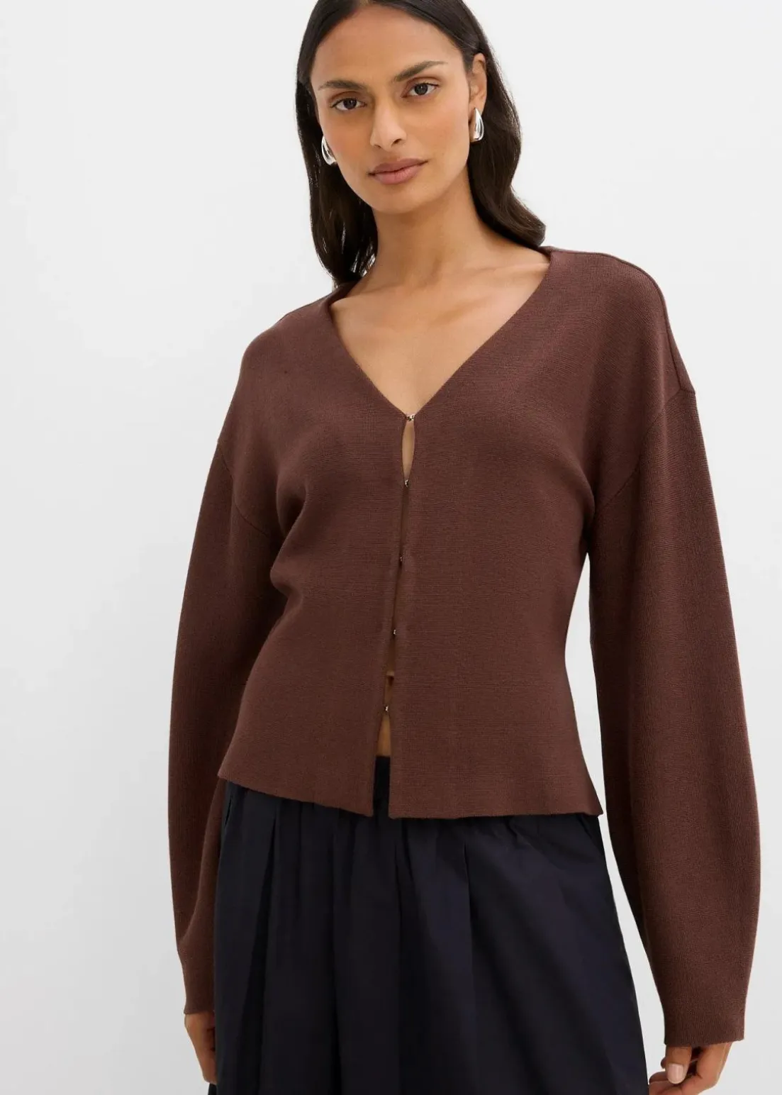Strickjacke mit voluminösen Ärmeln, V-Ausschnitt und Hakenverschluss vorne