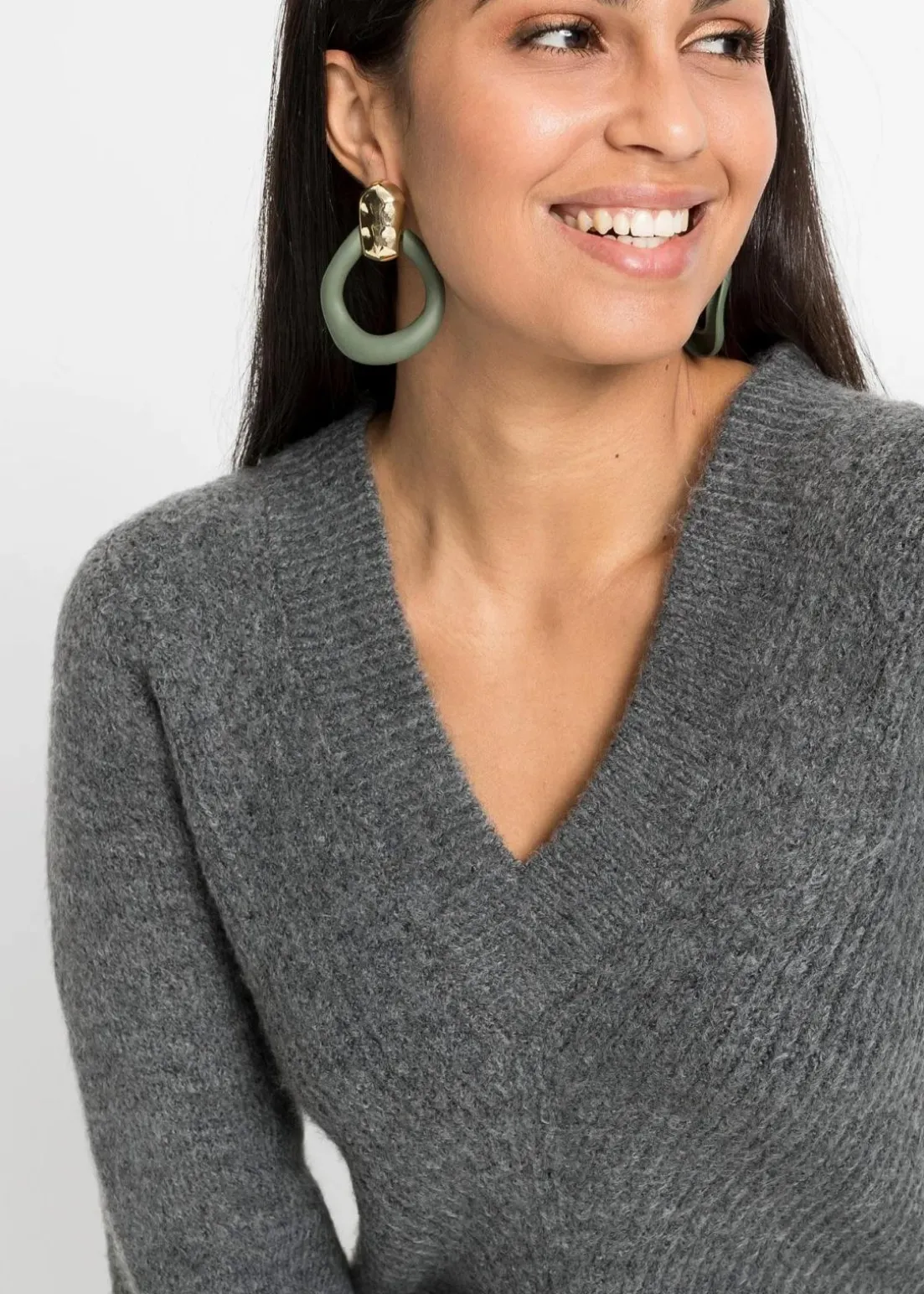 - Passformvorteile:betont das Dekolleté, streckender V-Ausschnitt