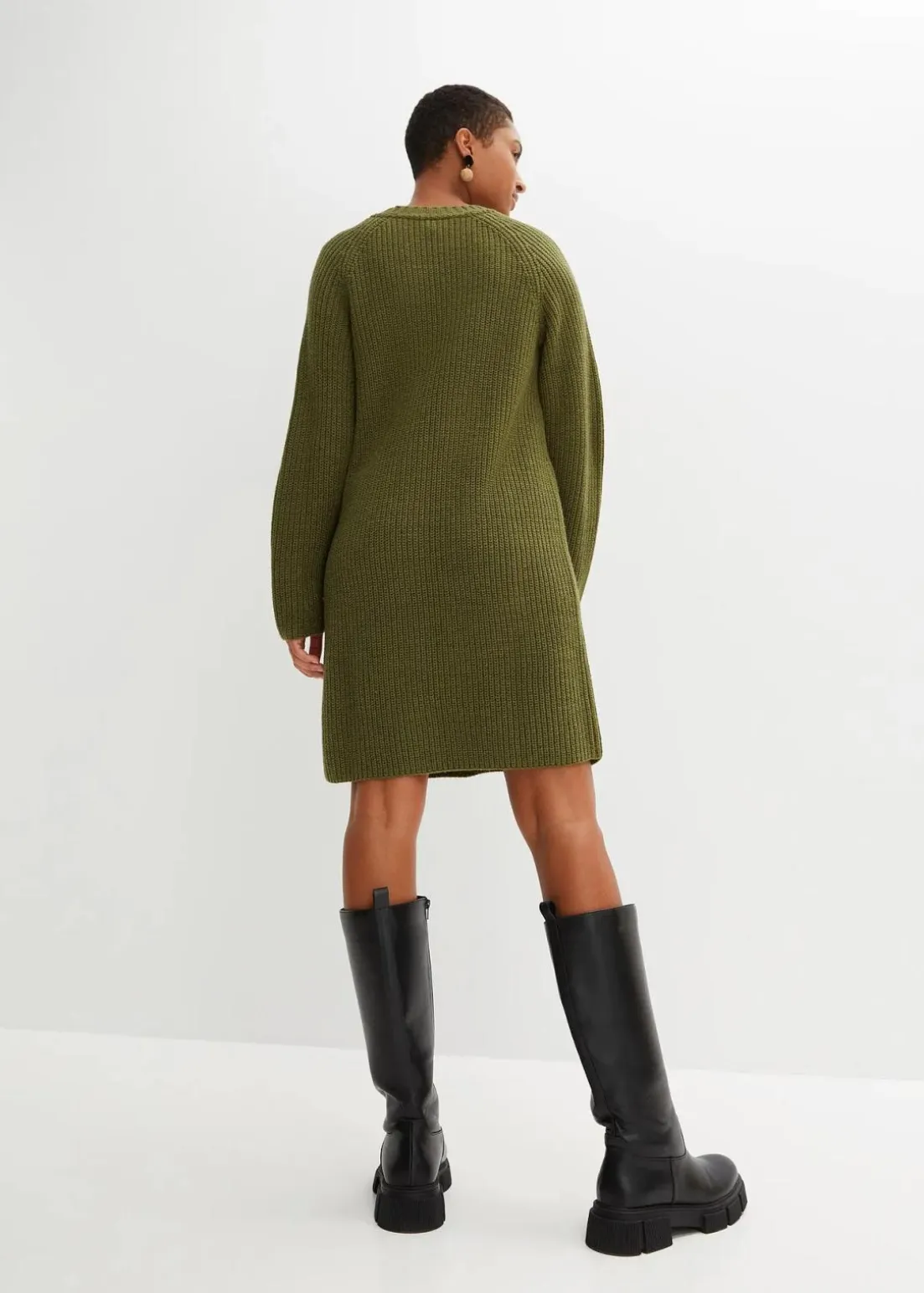 Modisches, knielanges Strickkleid mit Rundhalsausschnitt
