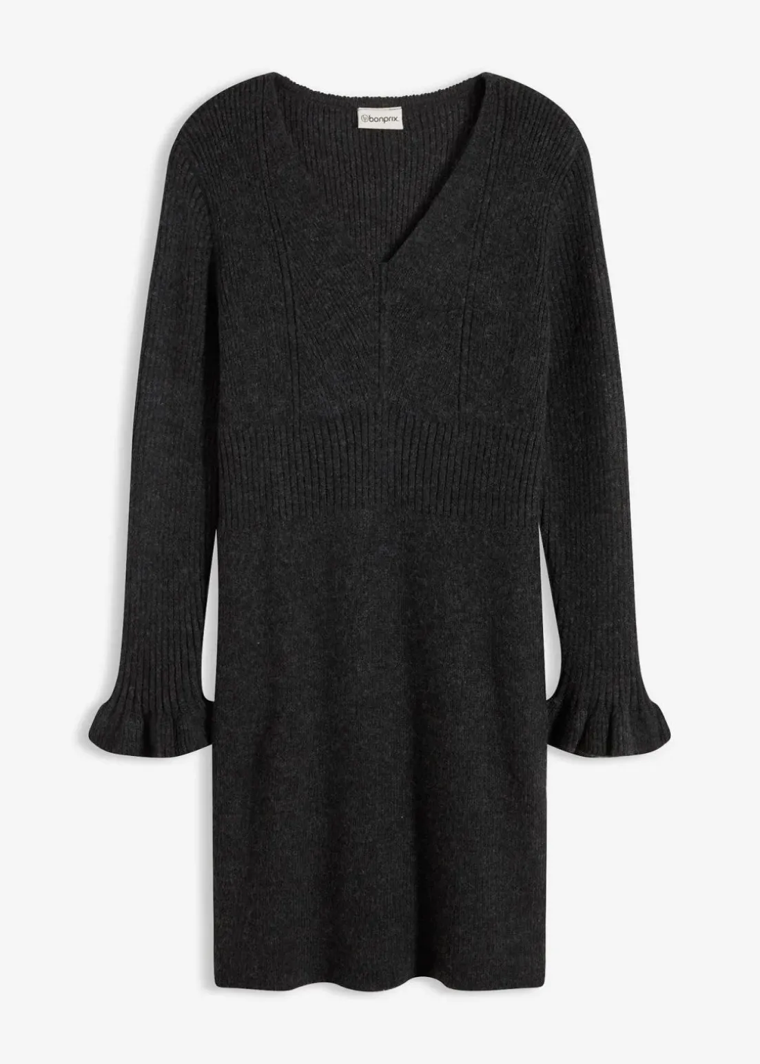feminines Strickkleid mit Volants am Ärmelsaum