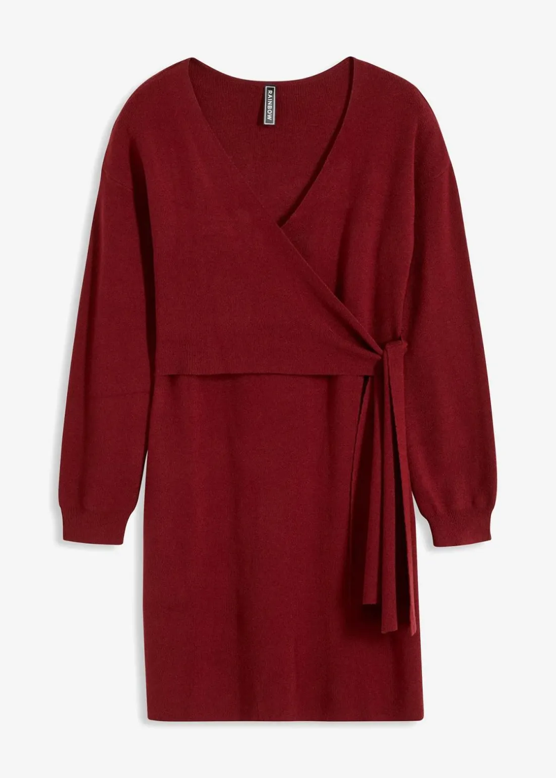 Kurzes Strickkleid in Wickeloptik mit V-Ausschnitt