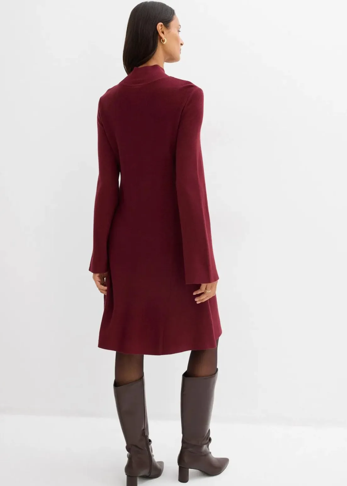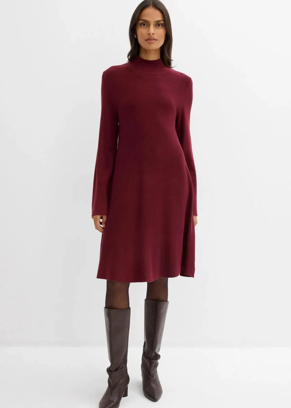 Ausgestelltes Kleid mit hohem Kragen und weitem Saum