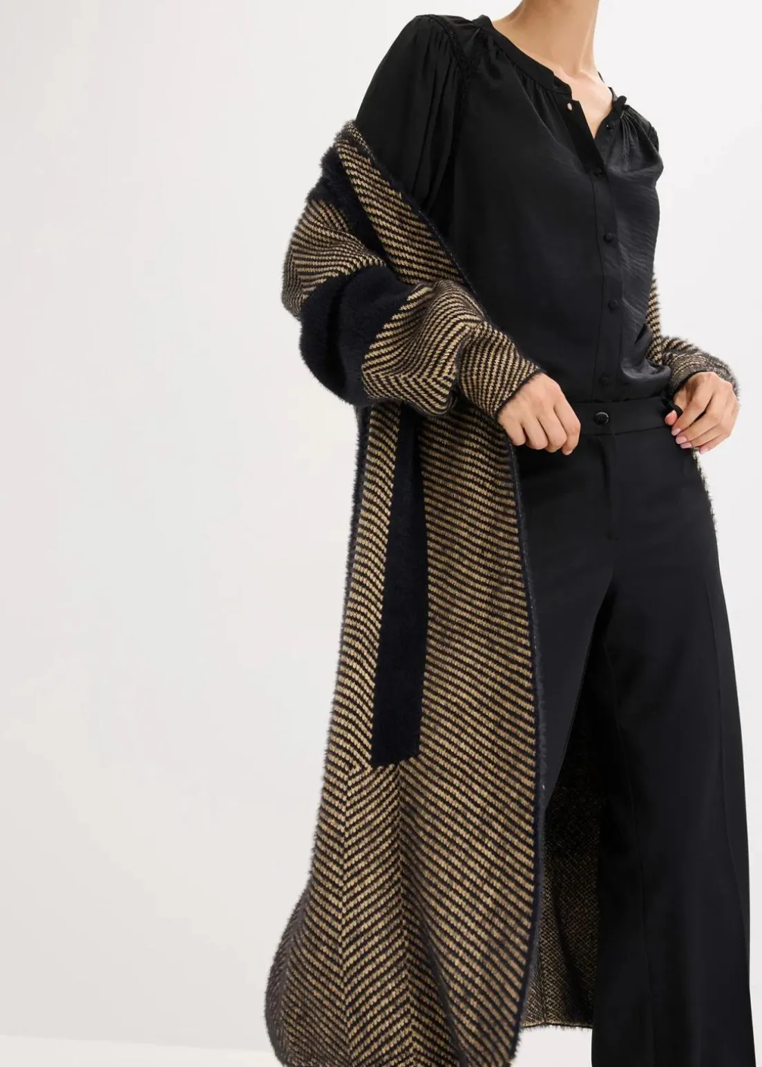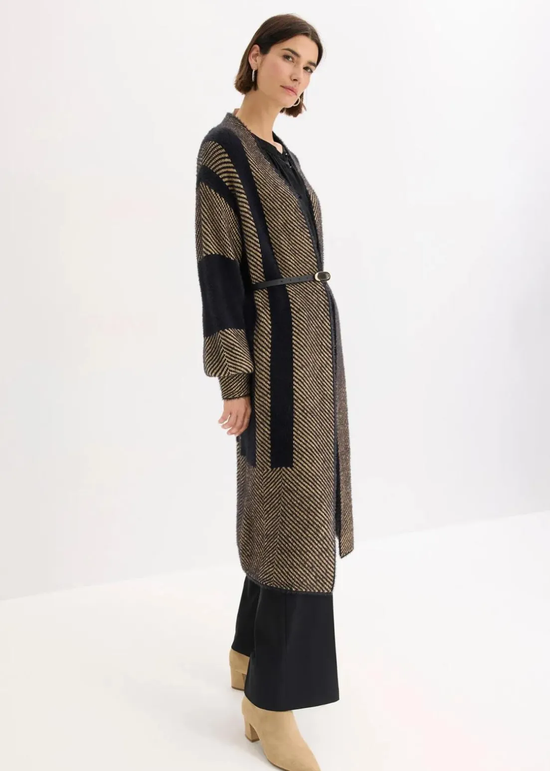 femininer Strickmantel mit grafischem Design