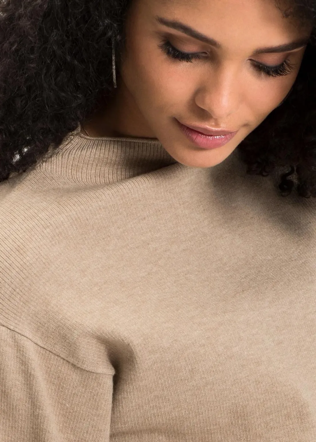 Aparter Strickpullover mit Ballonärmeln und Stehkragen
