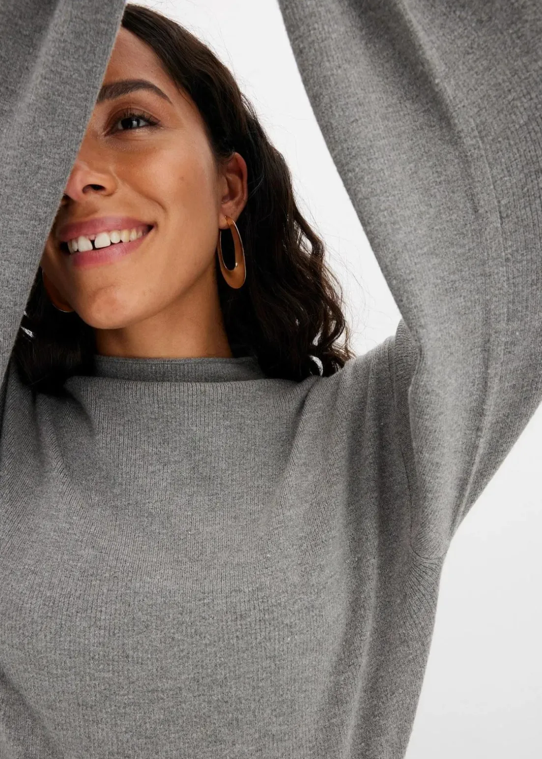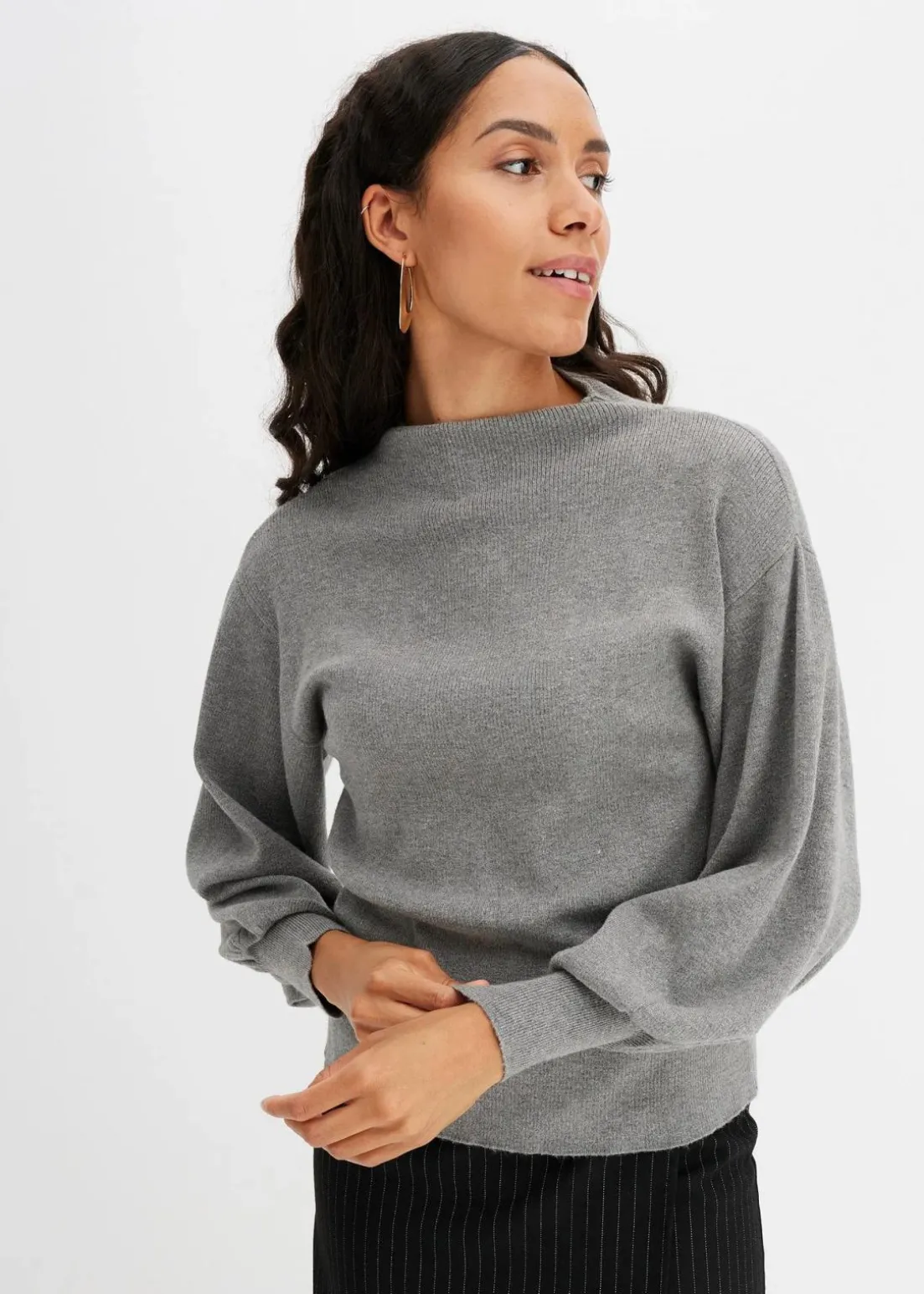 Aparter Strickpullover mit Ballonärmeln und Stehkragen