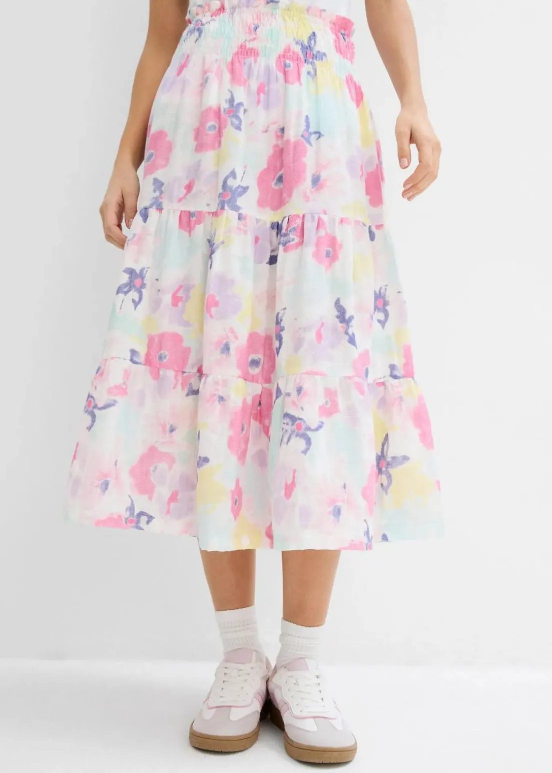 Bahnenrock aus Baumwoll-Musselin mit Blumenprint
