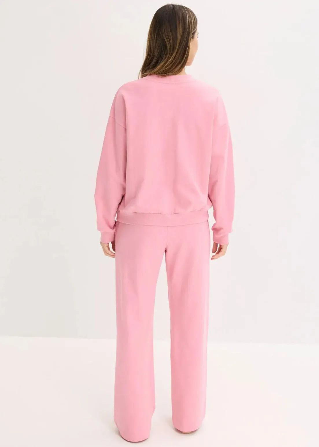 Modischer Sweat Hausanzug mit Rippbündchen am Shirt sowie Eingriffstaschen an der Hose mit weitem Bein