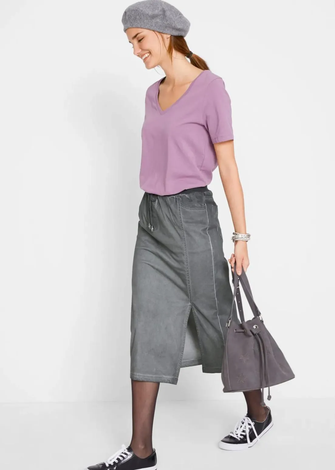 T-Shirt mit tiefem V-Ausschnitt und Rundsaum mit Seitenschlitzen