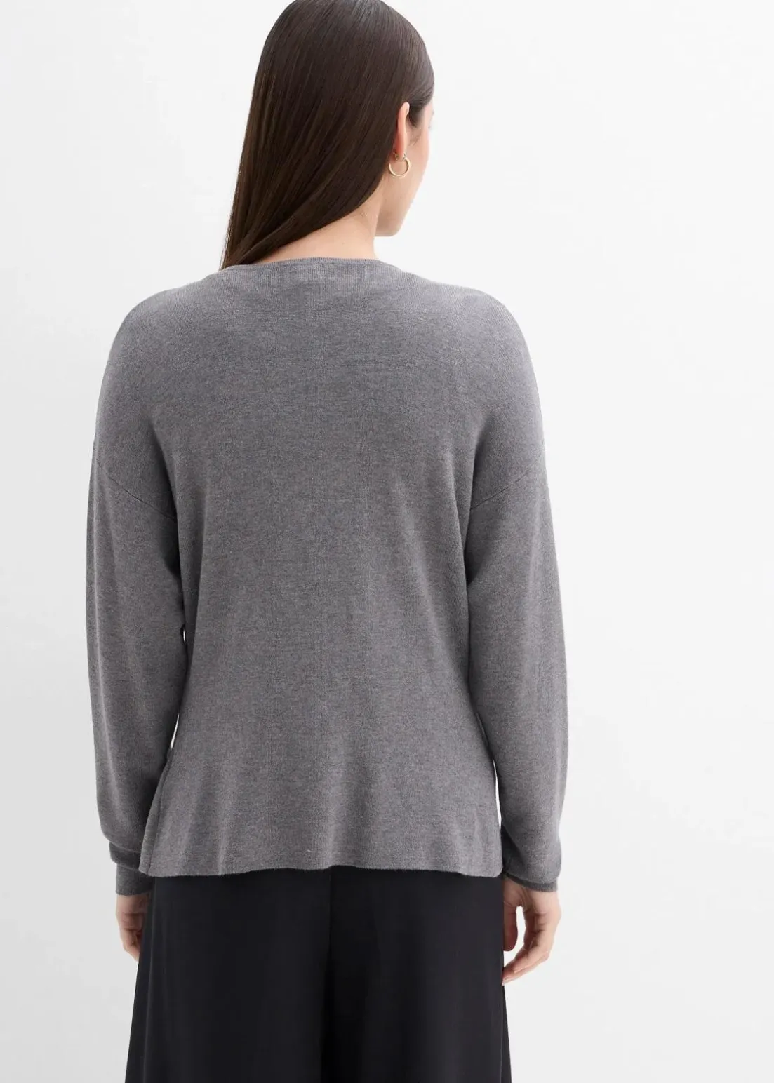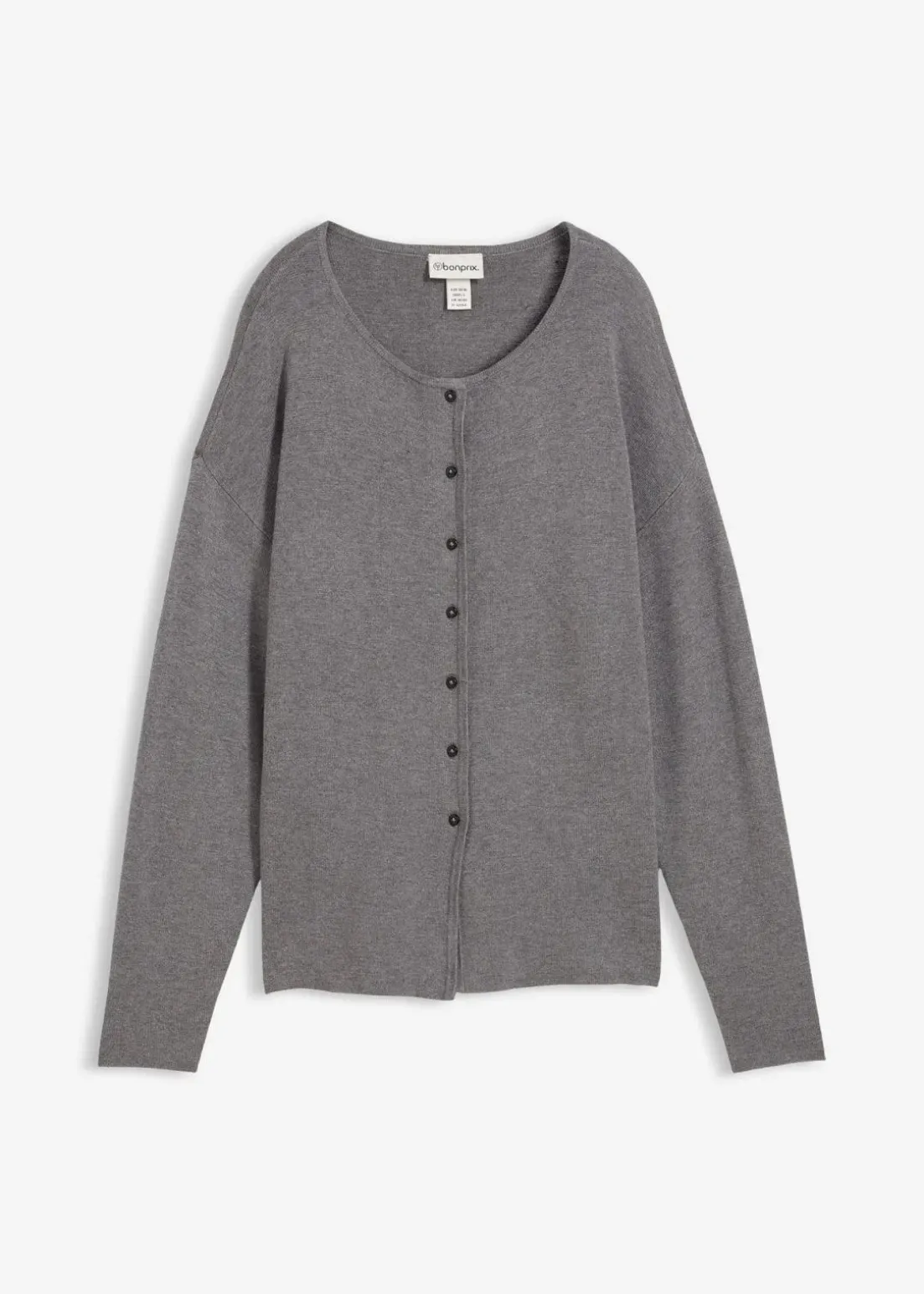 Taillierte Strickjacke mit langem Arm und farblich passender Knopfleiste vorne