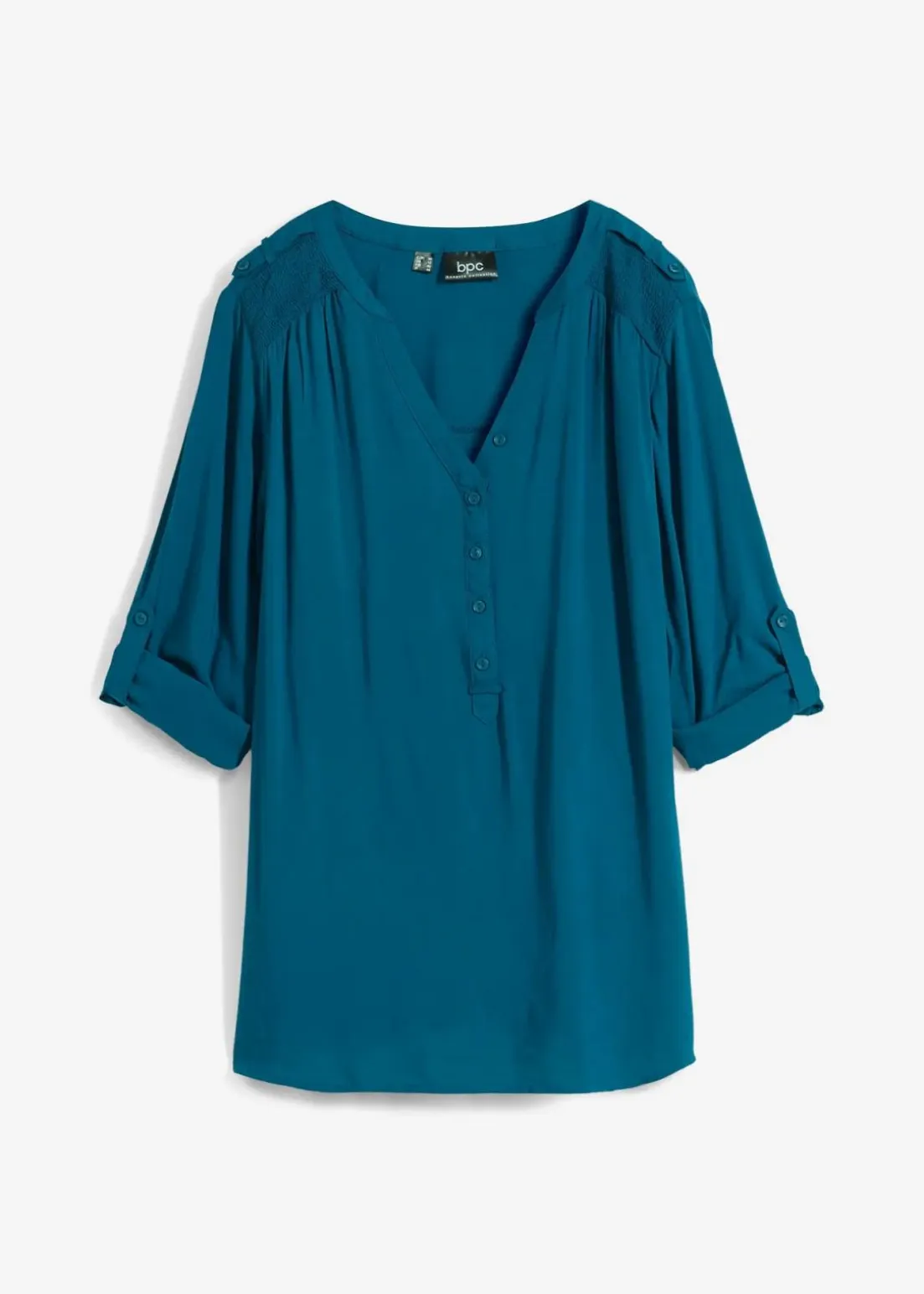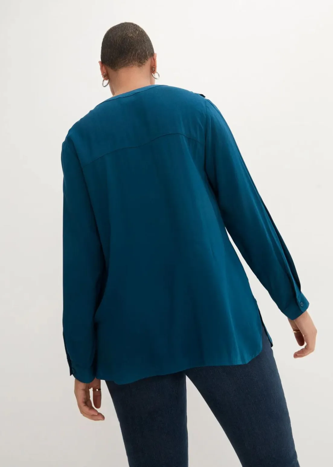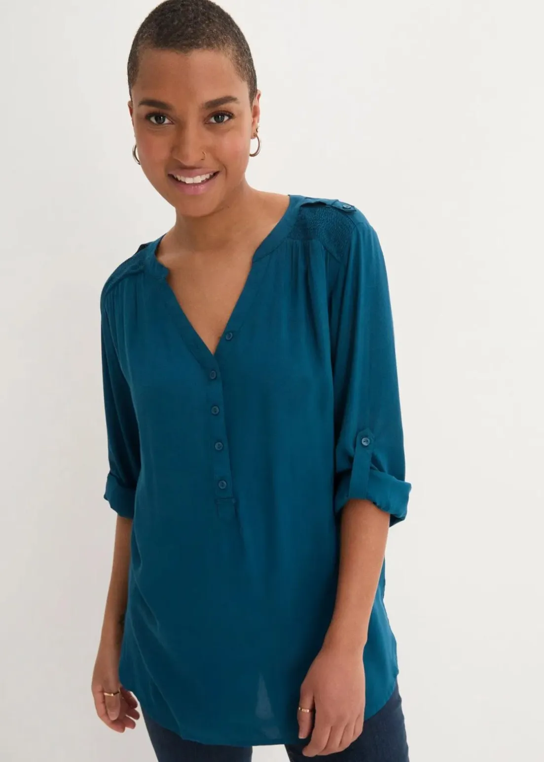 Blusentunika mit langen Ärmeln, Rundsaum und Knopfleiste
