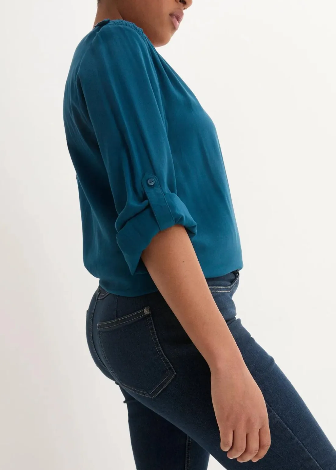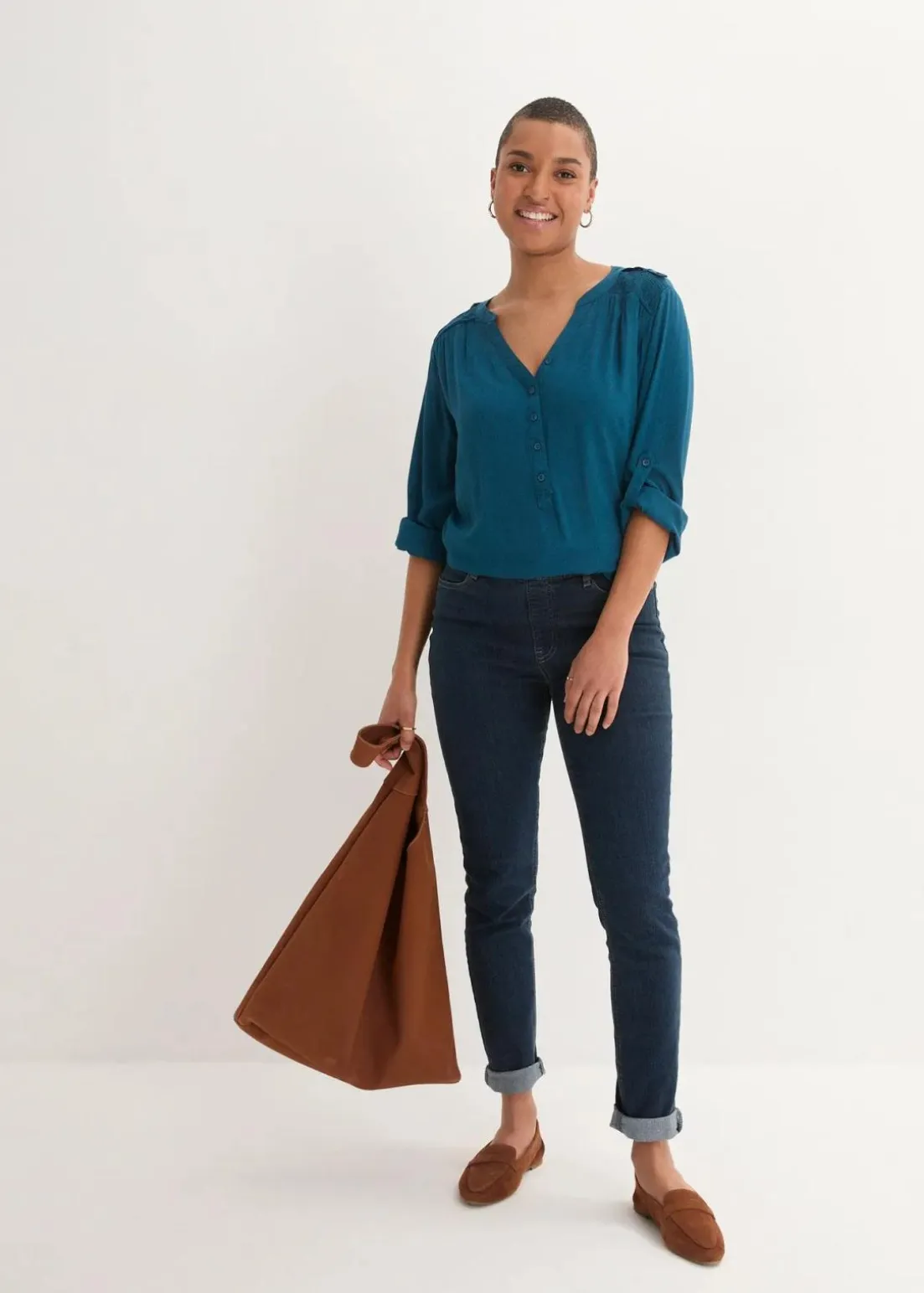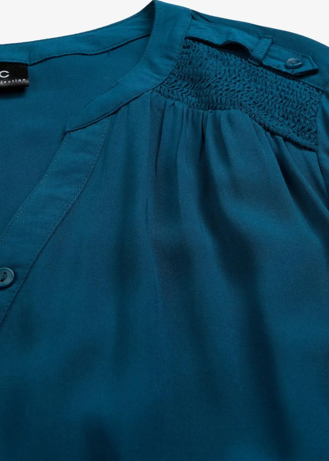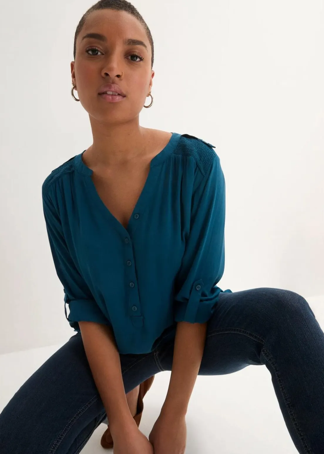 Blusentunika mit langen Ärmeln, Rundsaum und Knopfleiste