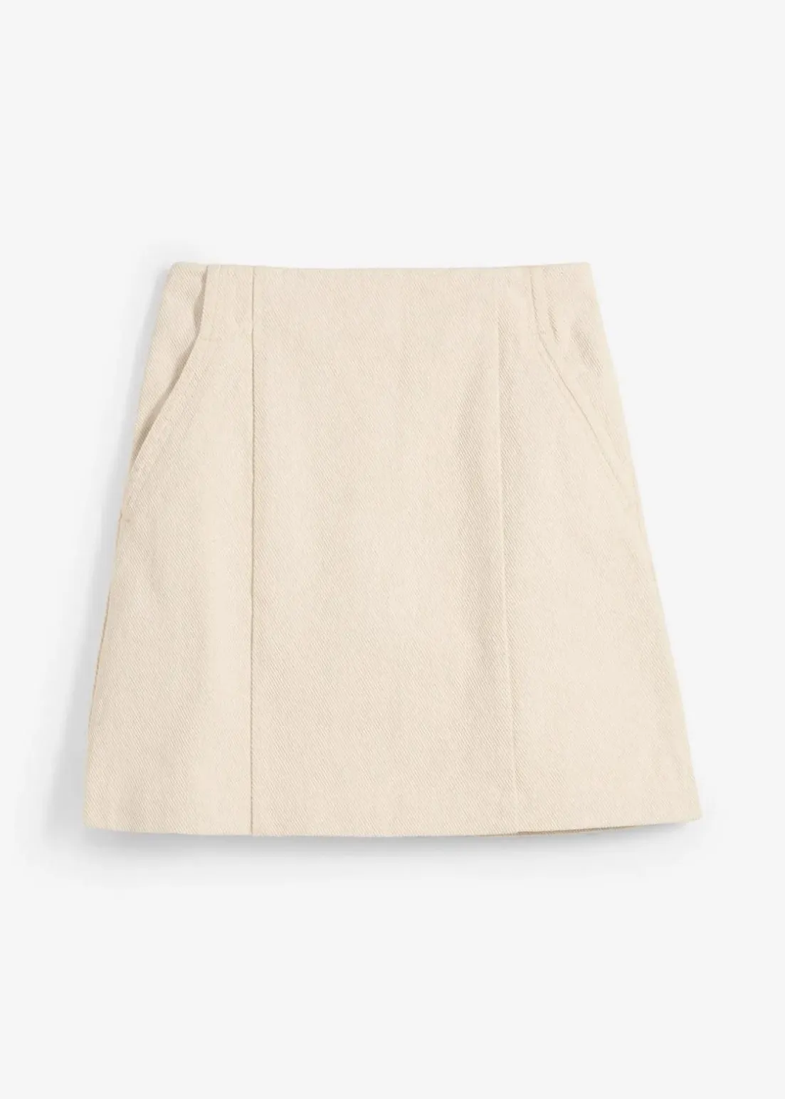 Kurzer Twill-Rock mit farblich passenden Teilungsnähten sowie seitlichen Eingrifftaschen