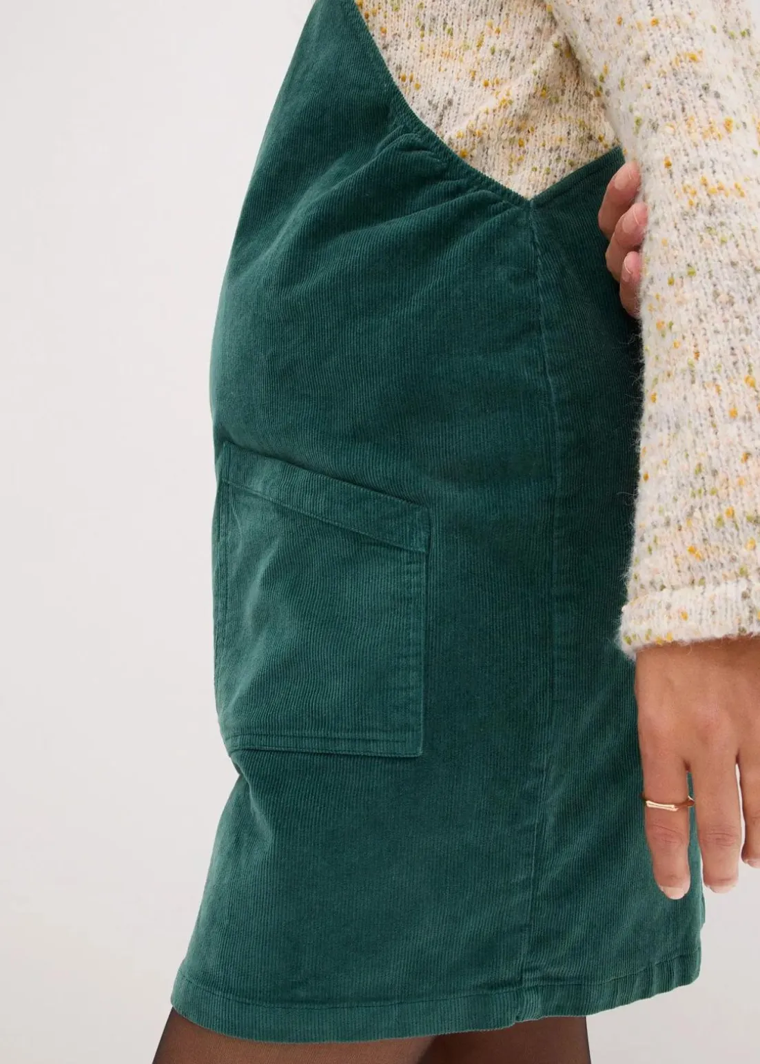 Kleid aus weichem Baumwollcord mit Elasthan. Mit verstellbaren Trägern und Taschen auf der Vorderseite.