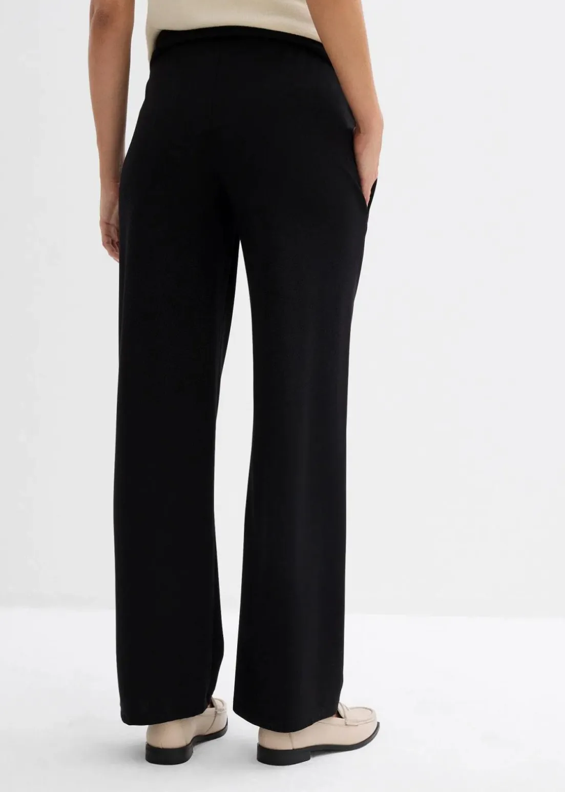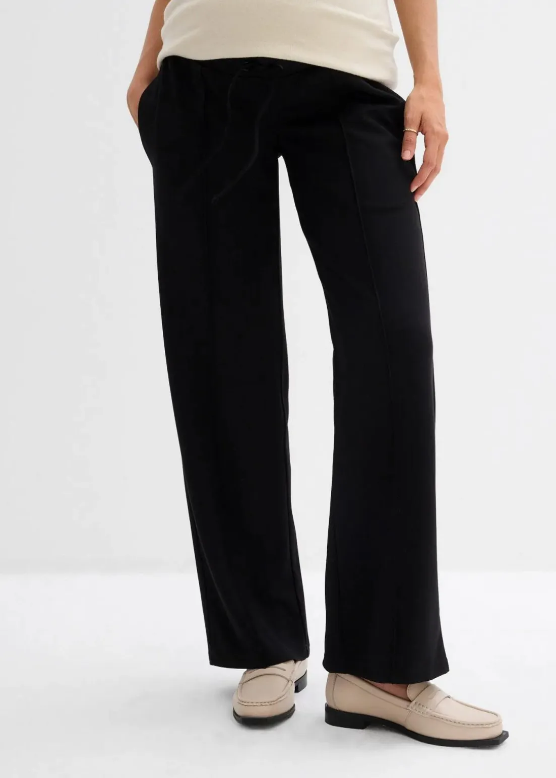 Lange Hose aus bequemem Punto di Roma mit breitem, angesetztem Jerseybund aus Baumwolle für eine optimale Passform am Bauch. Ein Kordelzug an der Hüfte ermöglicht die individuelle Weitenregulierung. Die Hose ist mit feinen Bügelfalten versehen.