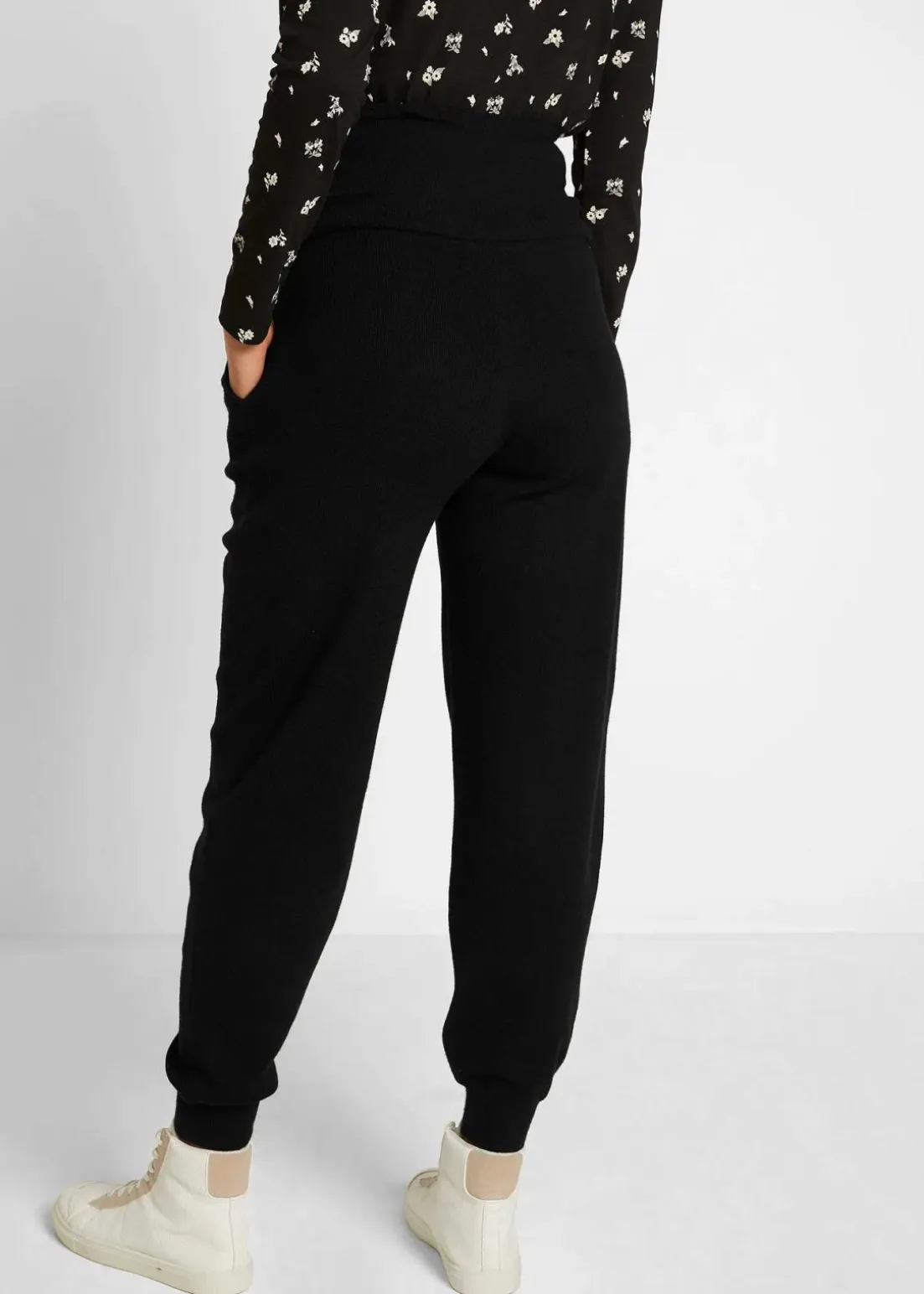 Strickjogginghose aus weicher Viskosemischung mit seitlichen Eingriffstaschen und elastischen Rippbündchen am Saum für einen bequemen Sitz. Das hohe Bauchband bietet angenehme Wärme und sorgt für guten Halt am Bauch.