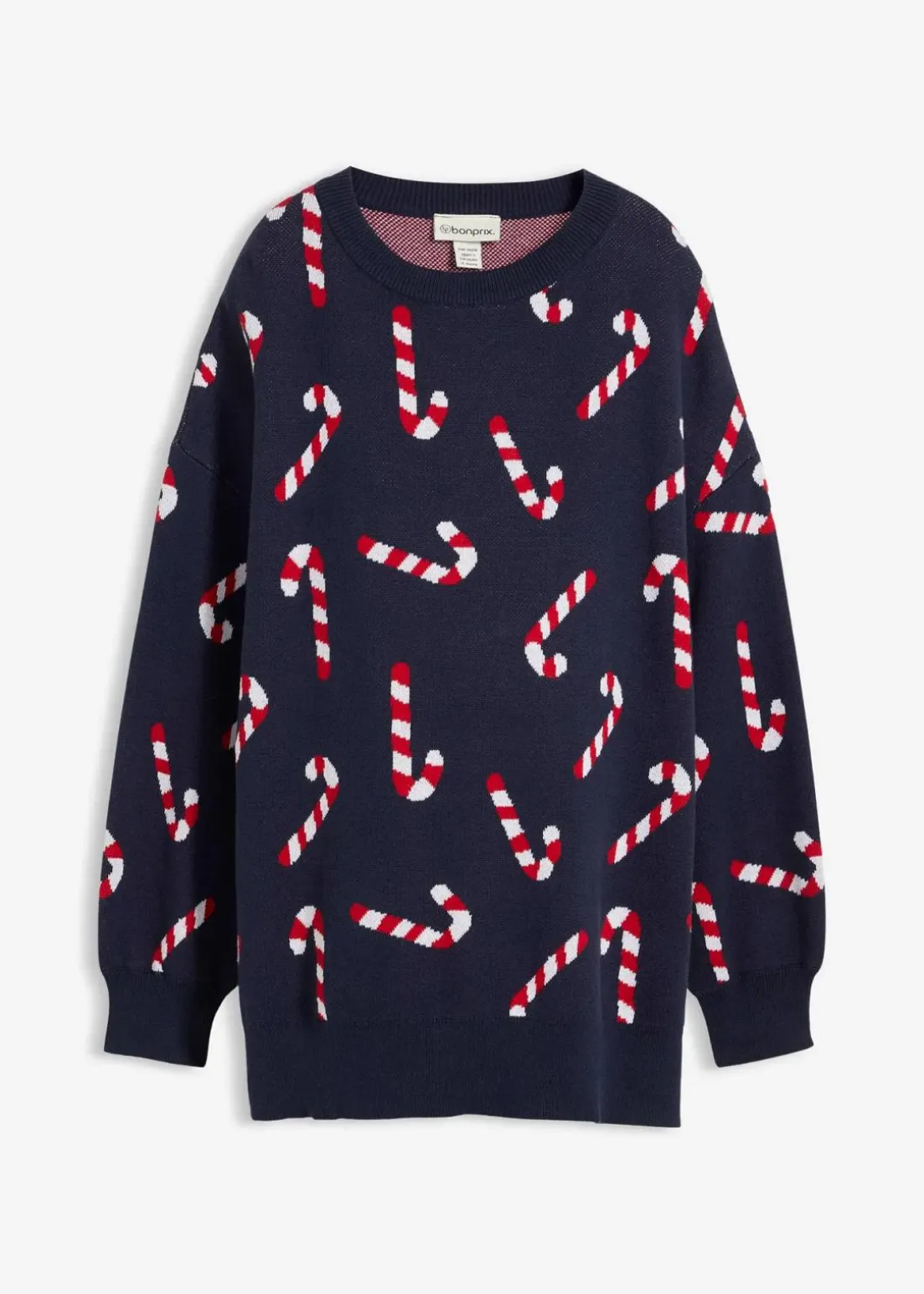 Dieser Umstandspullover mit fröhlichem Zuckerstangen-Print bringt festliche Stimmung in deine Garderobe. Der Regular Fit und die seitlichen Stillschlitze bieten Komfort und Funktion während der Schwangerschaft und Stillzeit. Mit Rundhalsausschnitt, langen Ärmeln und geradem Saum ist er ein gemütlicher Begleiter für die Winterzeit.