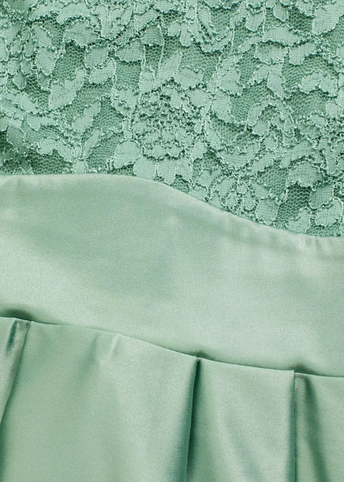 Bezauberndes Cocktail-Kleid aus glänzendem Satin mit Taillen-Einsatz und Spitze im Oberteil
