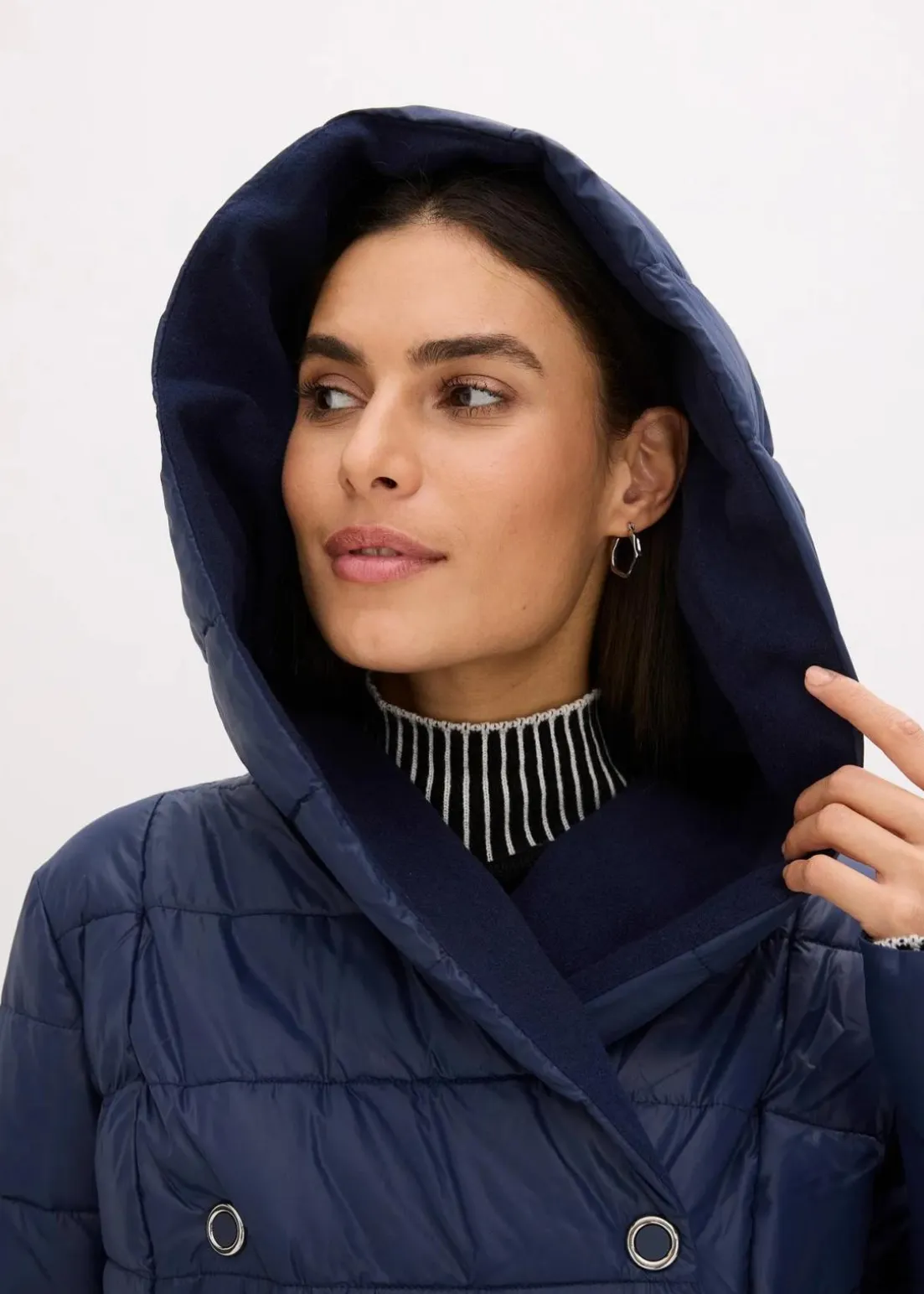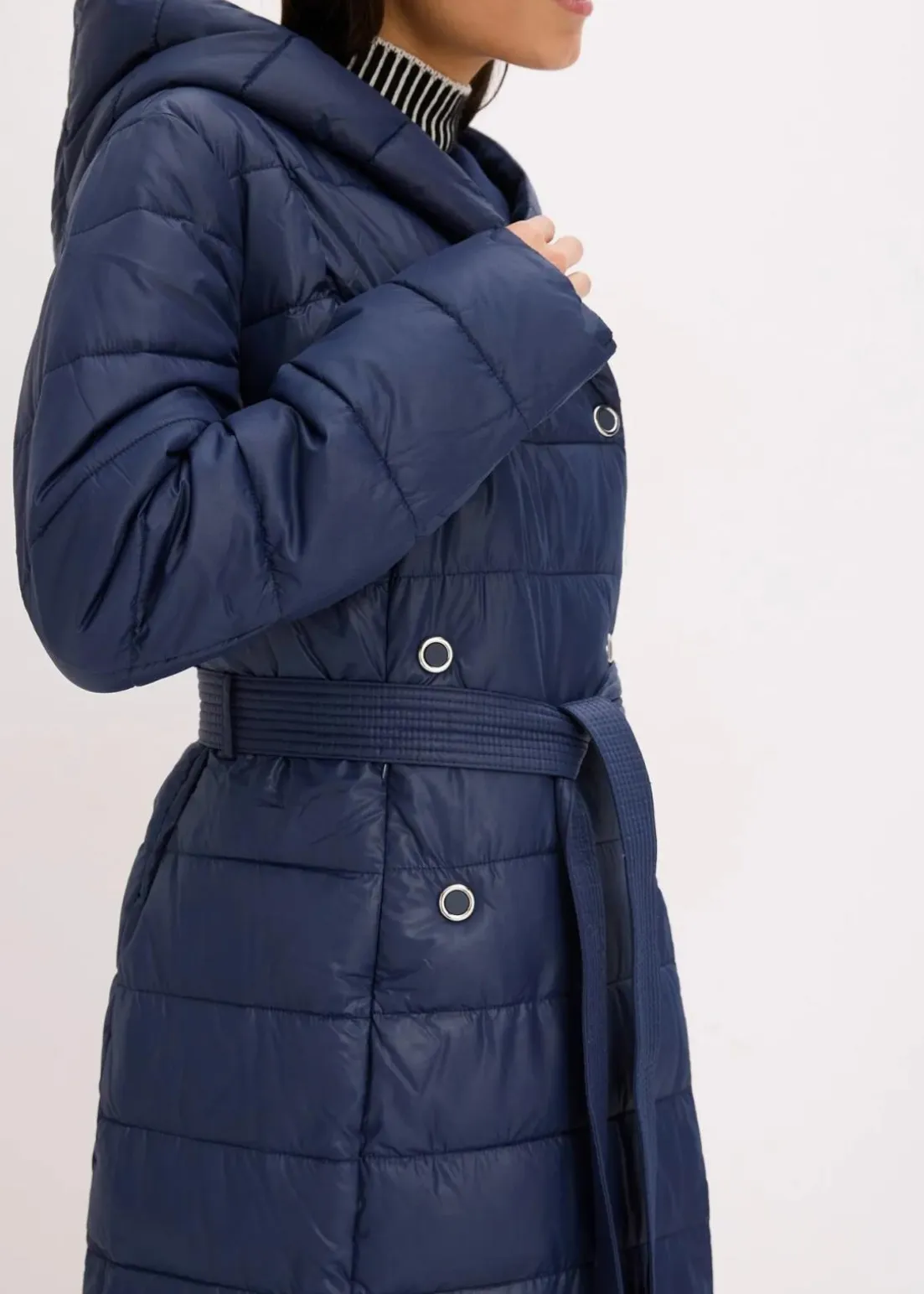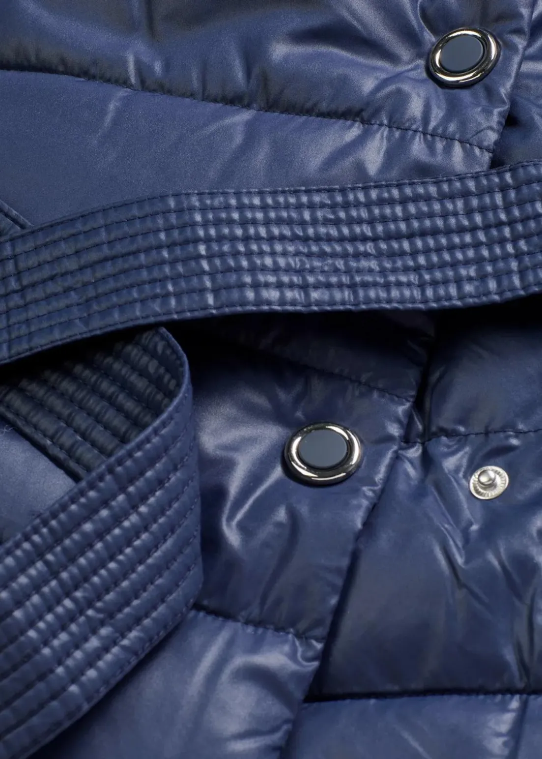 schöner Steppmantel mit Wollimitat Besatz und Bindegürtel (2-tlg.)