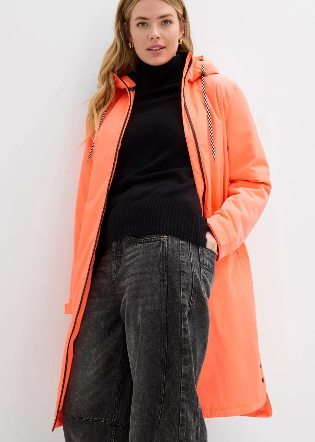 Funktional Regenmantel in Midi-Länge leicht wattiert, mit Reißverschlusstaschen, bequem geschnitten