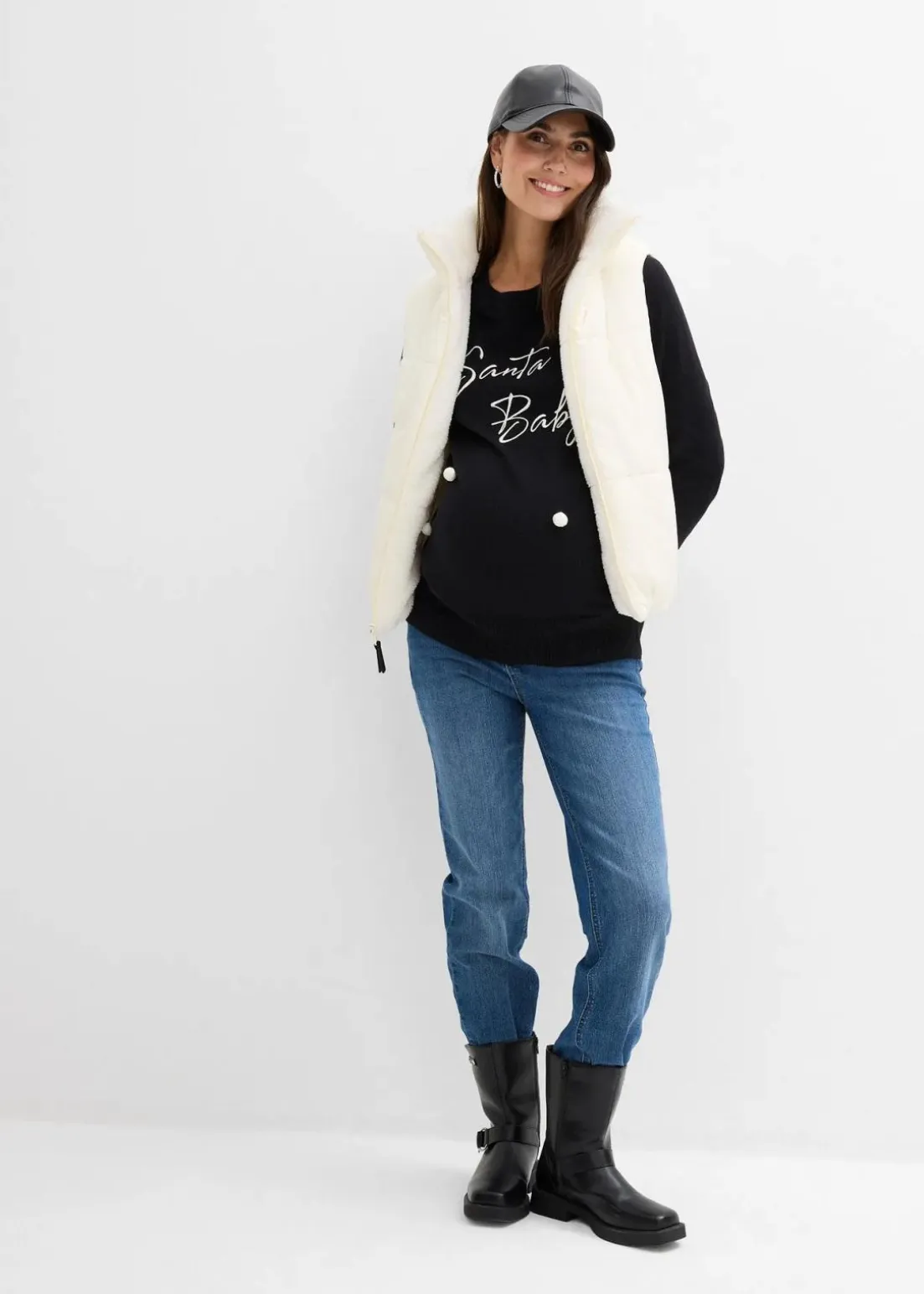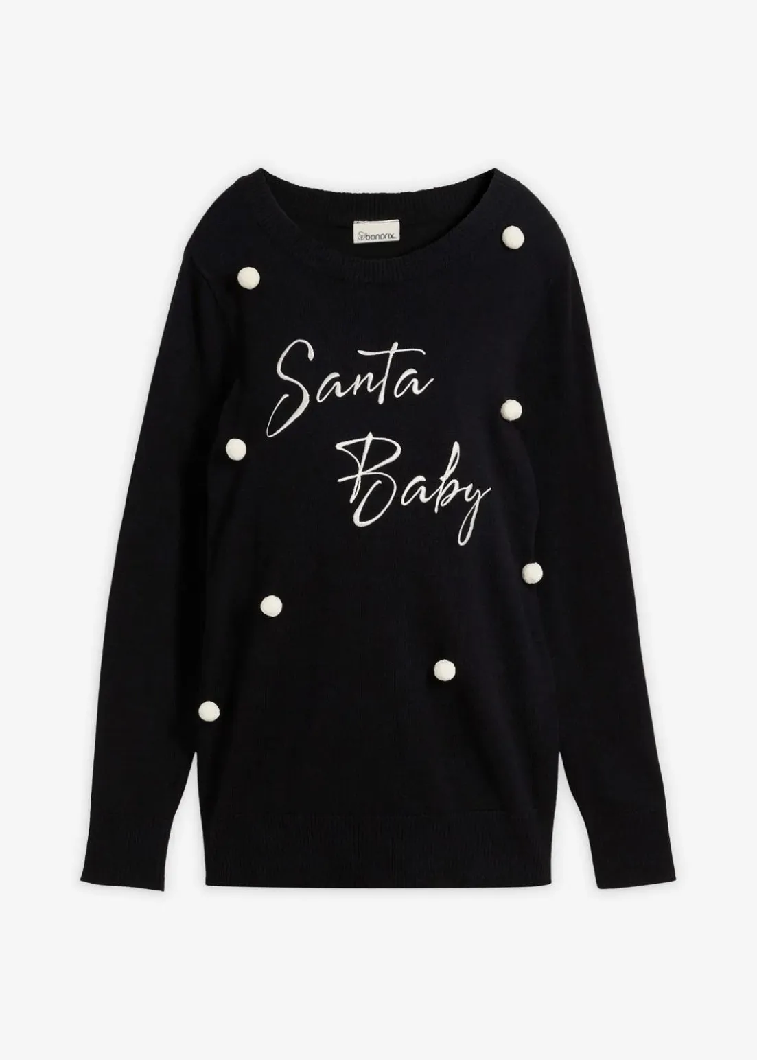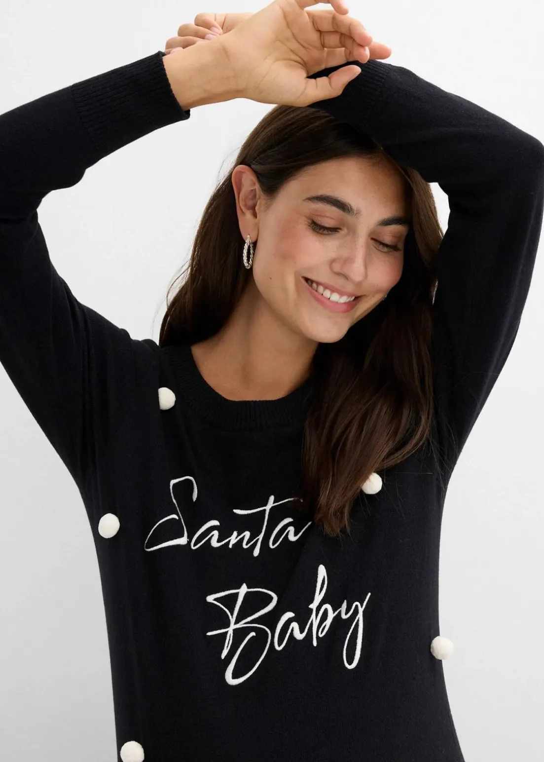 Dieser Umstandspullover bringt festliche Stimmung in deine Garderobe. Mit seinem „Santa Baby“-Stick und den verspielten Pompons sorgt er für einen besonderen Look. Der hüftbedeckende Regular Fit und die langen Ärmel bieten Komfort und Bewegungsfreiheit. Perfekt für die Feiertage – stylisch, gemütlich und ideal für deinen Babybauch.