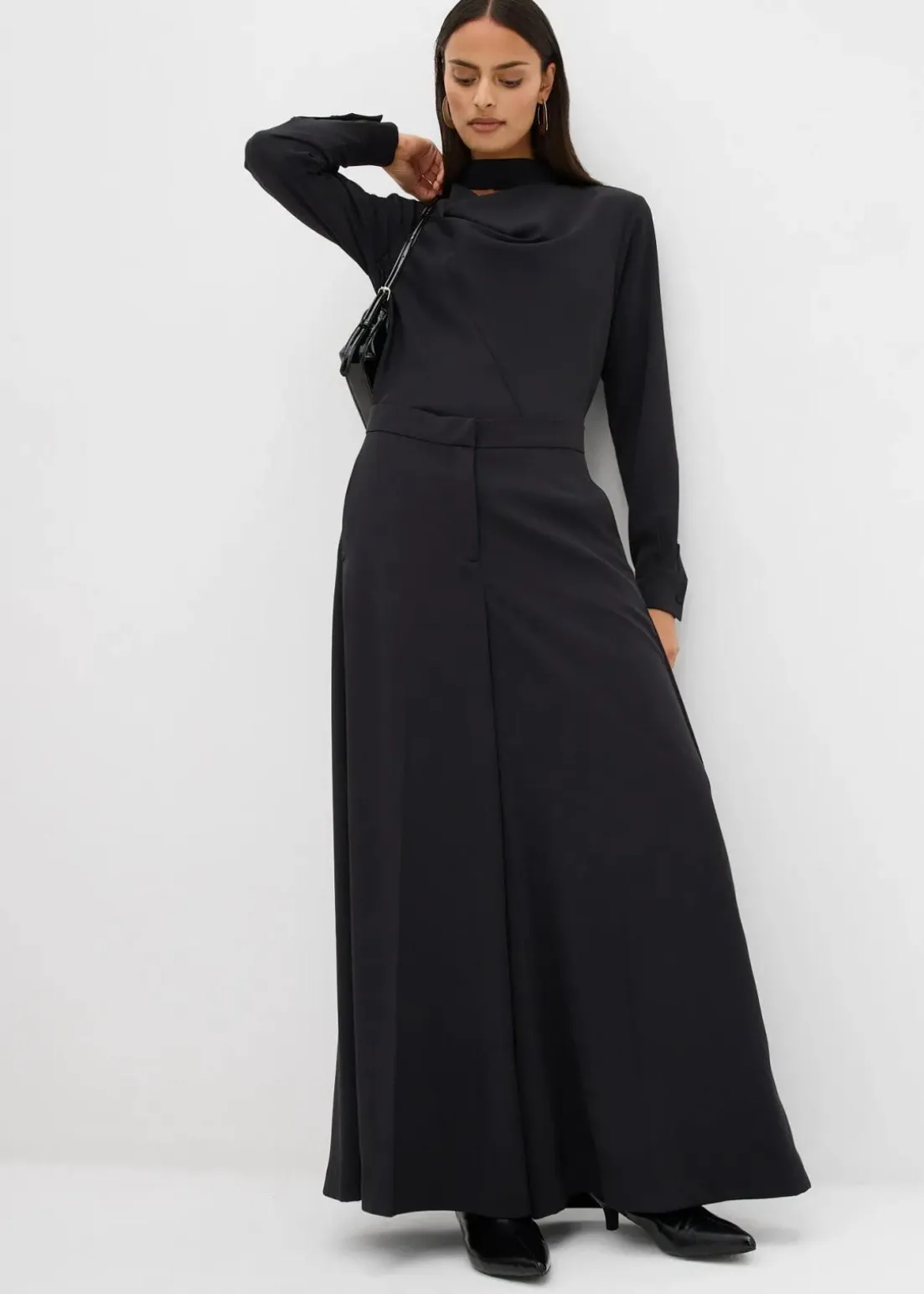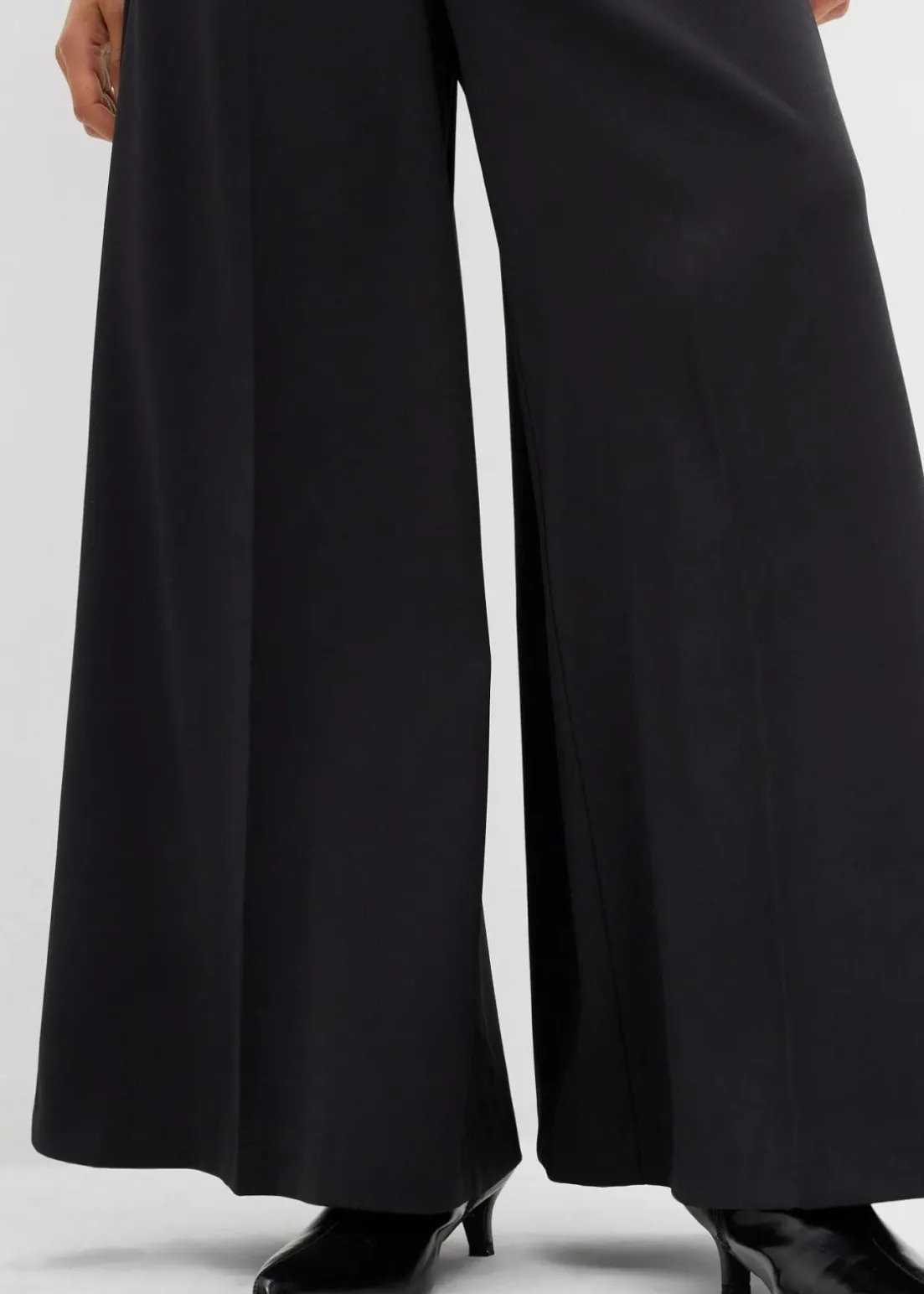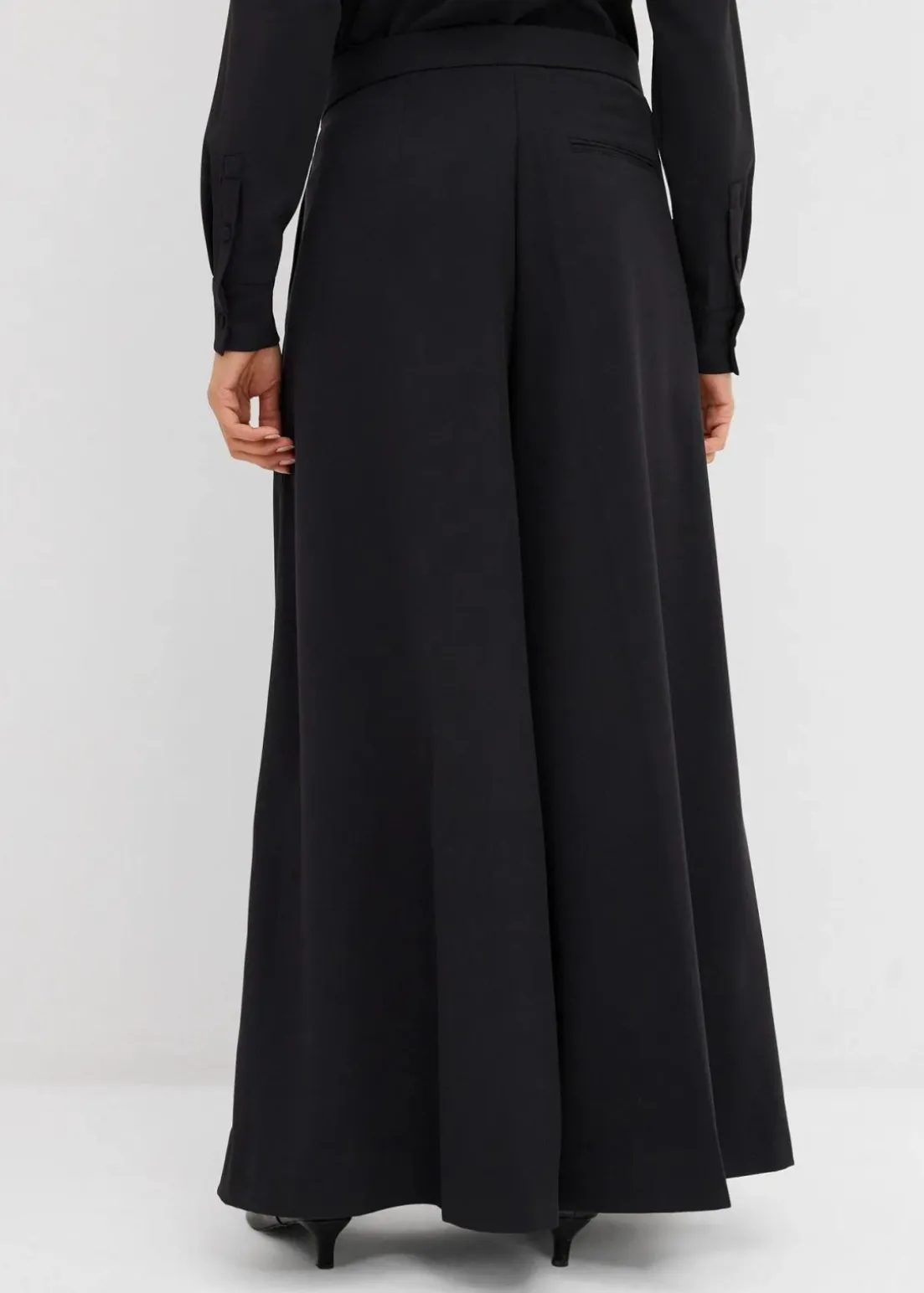 Fließende Hose mit voluminösem weitem Bein und Haken- sowie Riegelverschluss und Reißverschluss