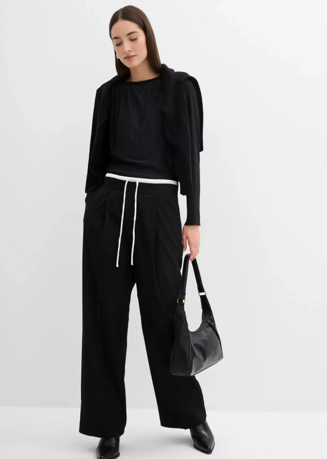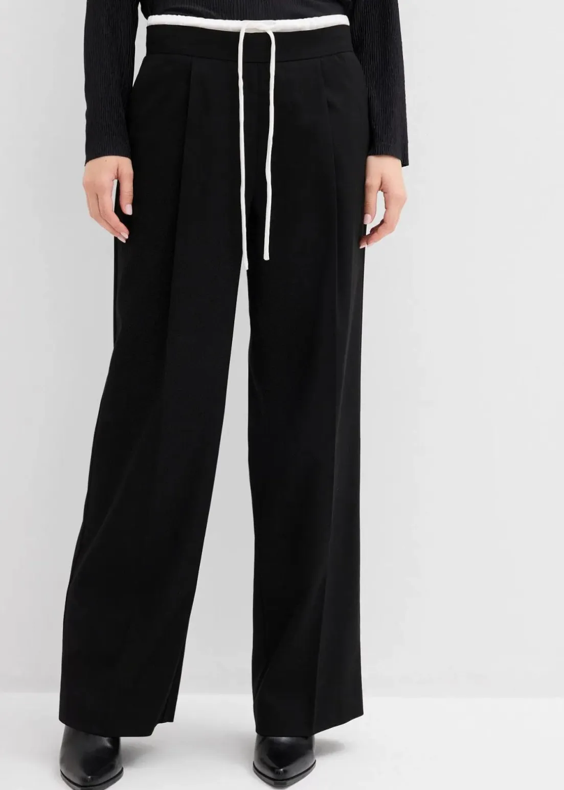 Hose mit weitem Bein und kontrastfarbigen Doppelbund mit Zip Fly und Knopf
