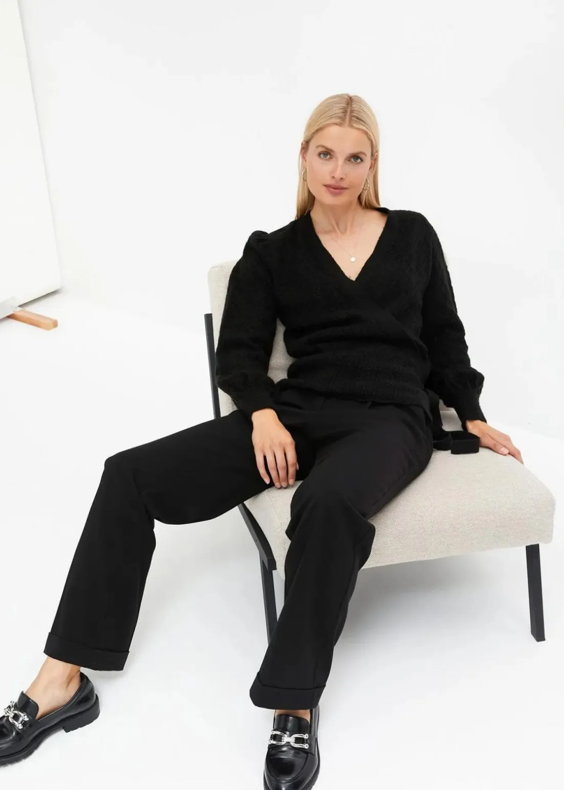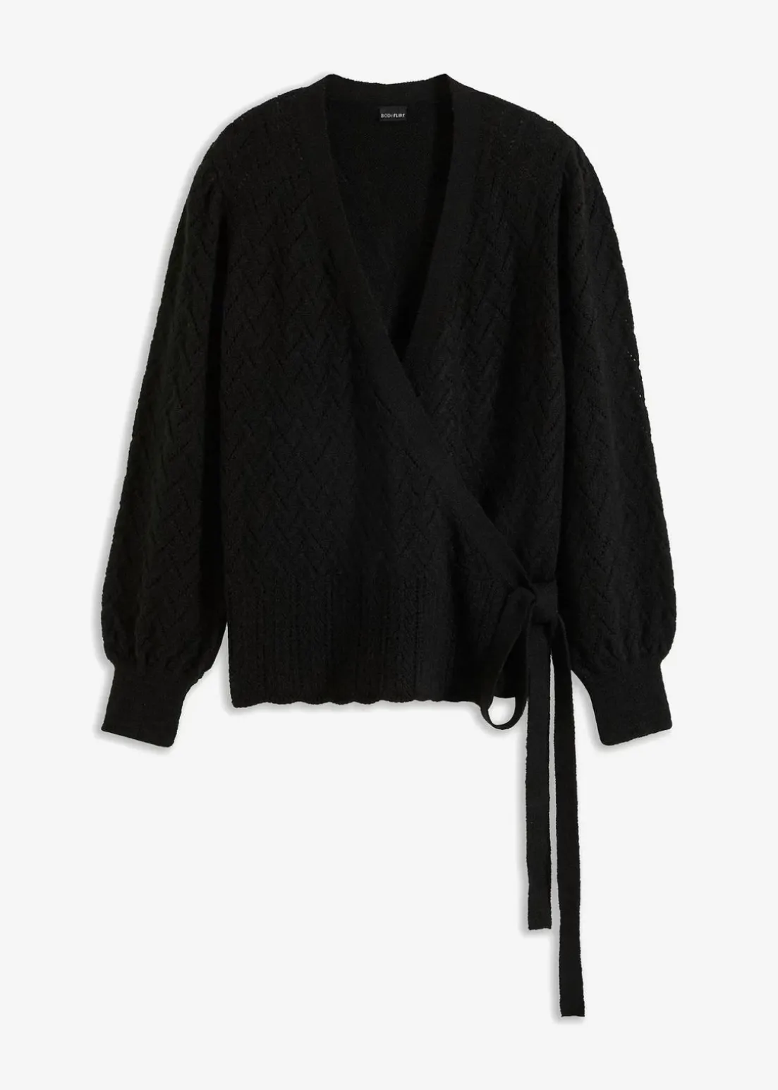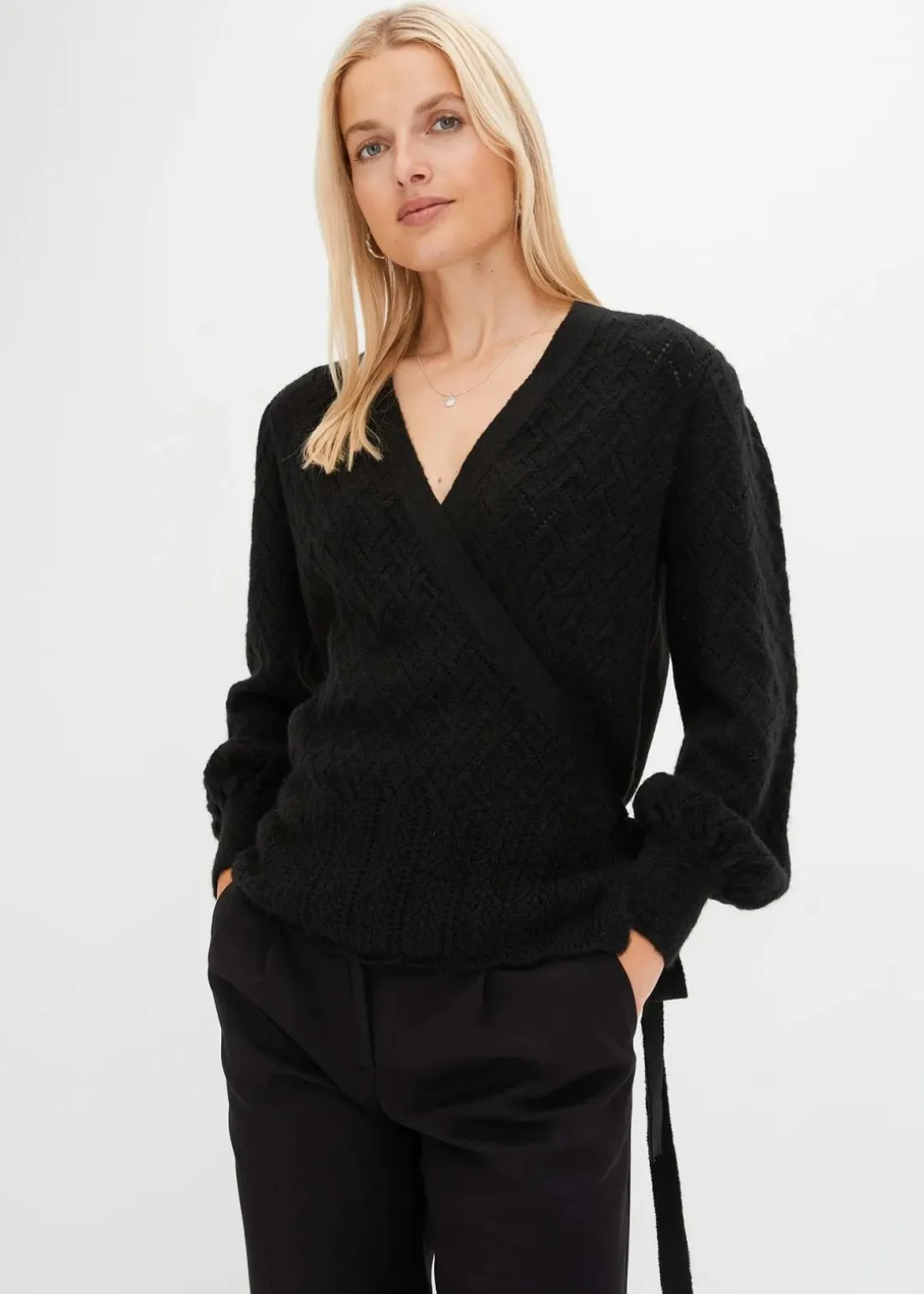 Zauberhafter Wickelpullover mit Bindeband und Puffärmeln.