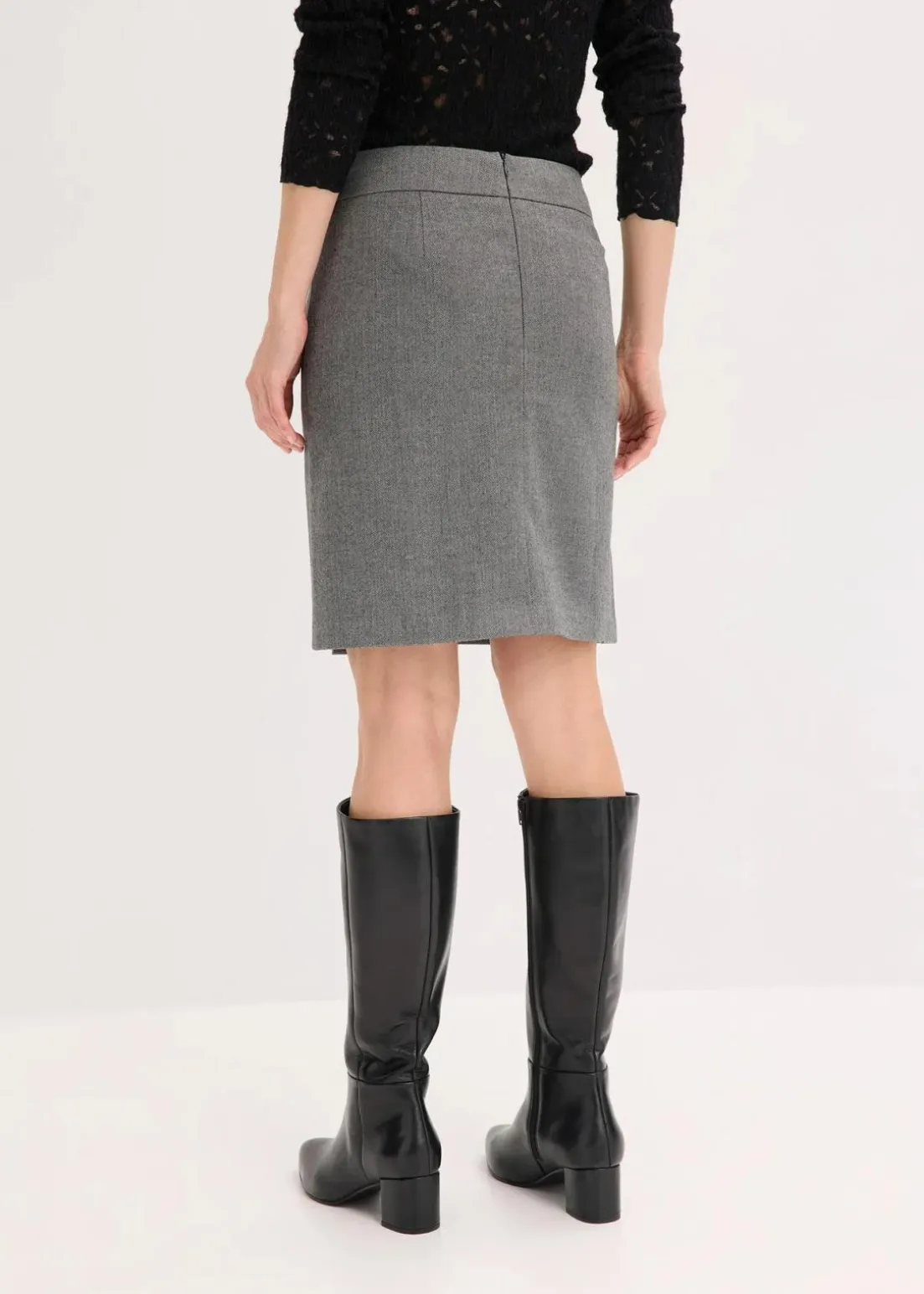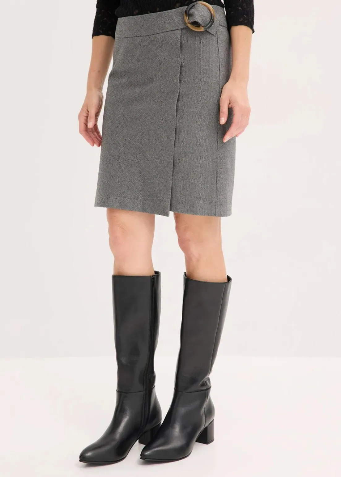 eleganter Rock mit Fischgratmuster und dekorativer Schnalle