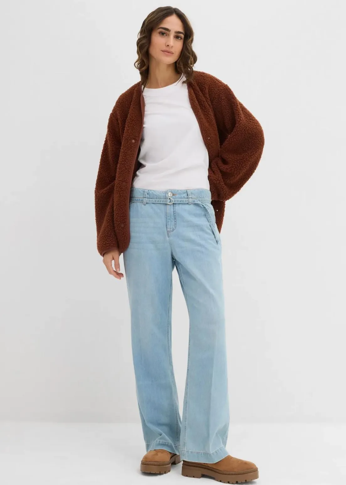 Wide-Leg-Jeans Mid Waist mit Gürtel