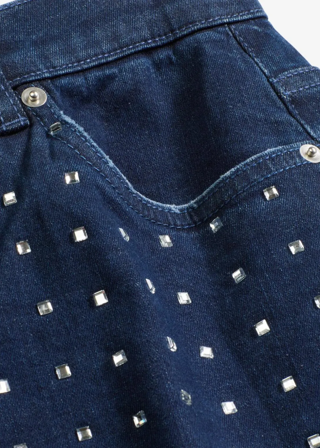 Loose Straight-Jeans Mid Waist mit Strassapplikation